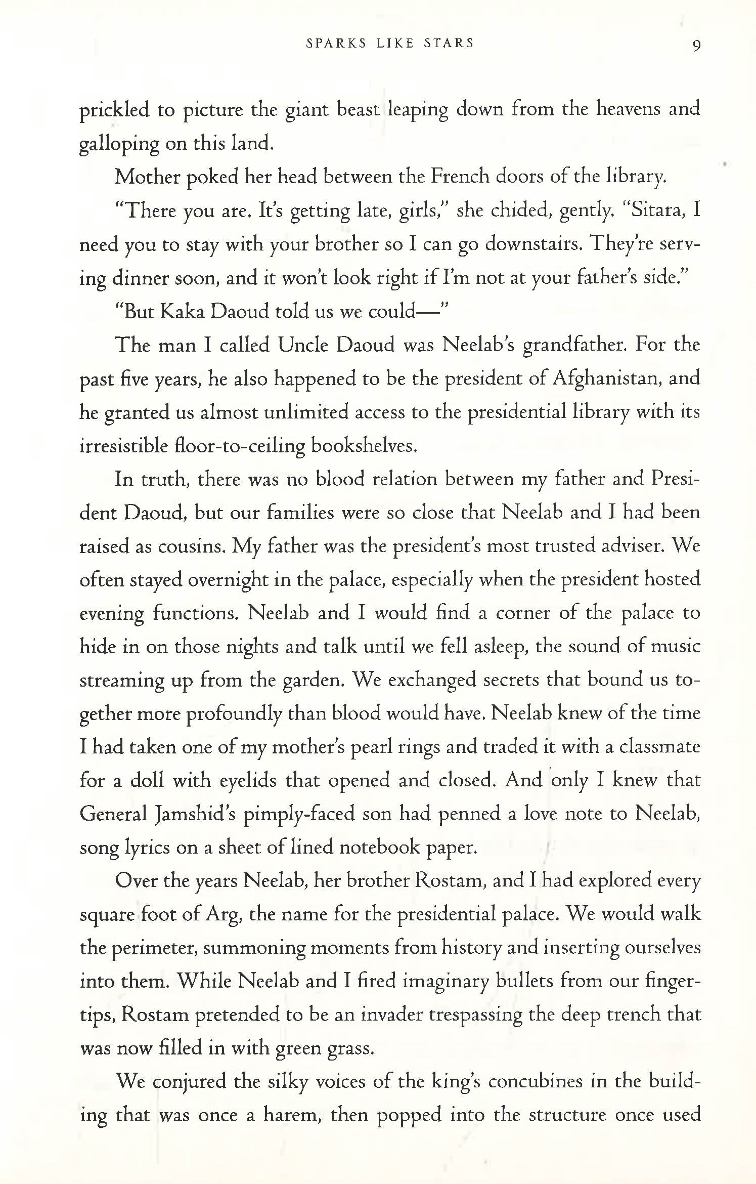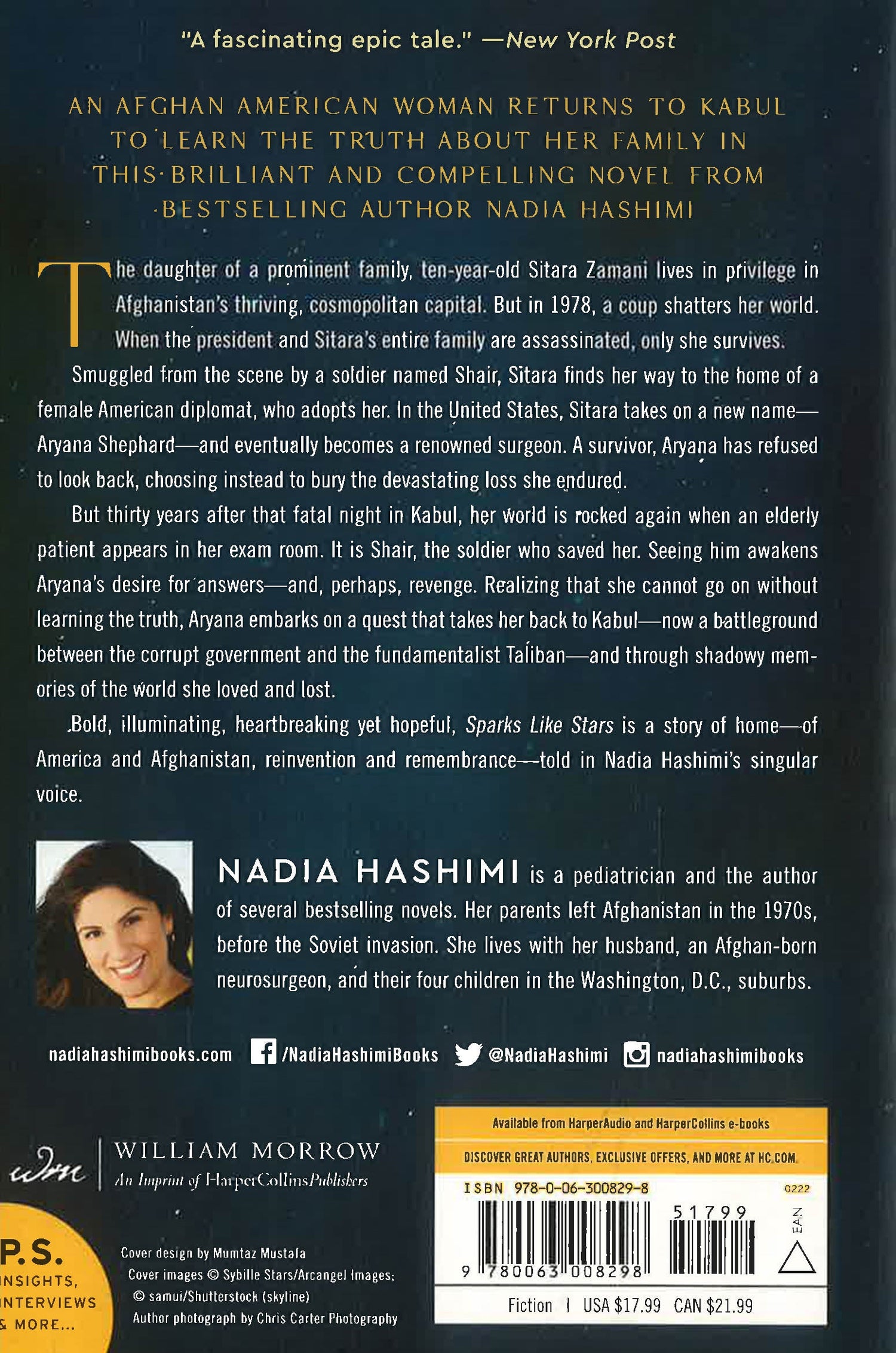 Bold, illuminating, heartbreaking, yet hopeful, Sparks Like Stars is a story of home—of America and Afghanistan, tragedy and survival, reinvention and remembrance, told in Nadia Hashimi’s singular voice.