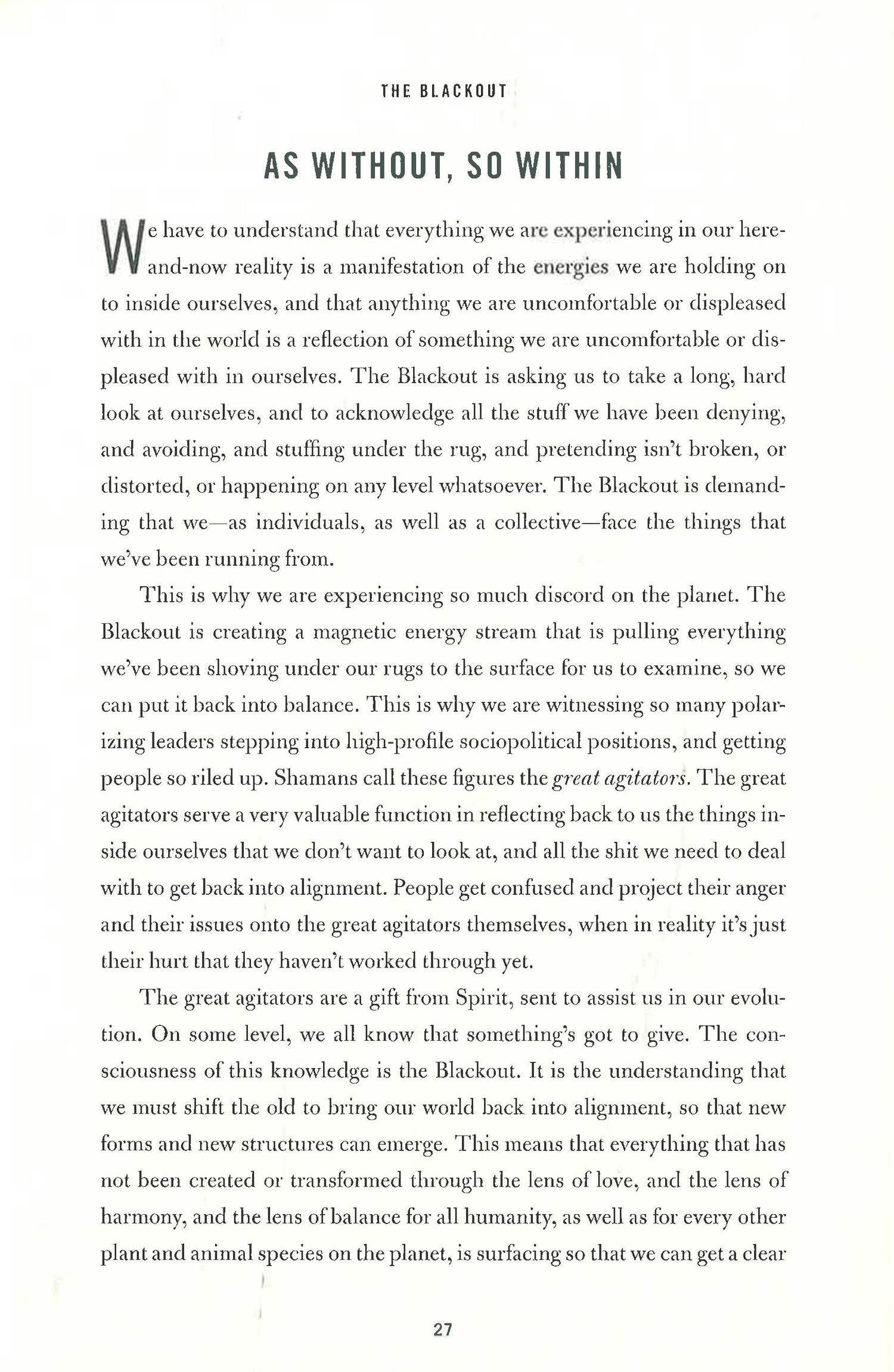 Shaman Durek’s bold and sometimes controversial wisdom shakes loose our assumptions about ourselves and the very world around us. He ultimately teaches us how to step fearlessly out of this Blackout (the age of darkness we are currently experiencing) and access a place of fierce empowerment by use of tools and techniques of timeless Shamanic tradition. This transformation is both personal and collective; as individuals step out of darkness and begin to experience the light, we bring our loved ones and communities out of the shadows as well.