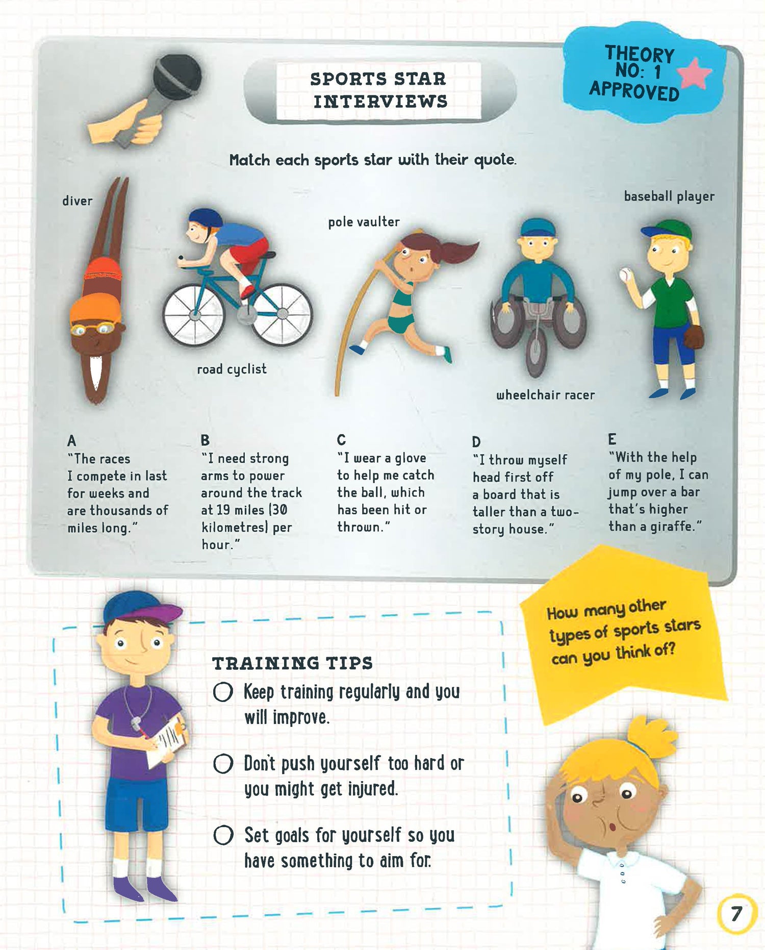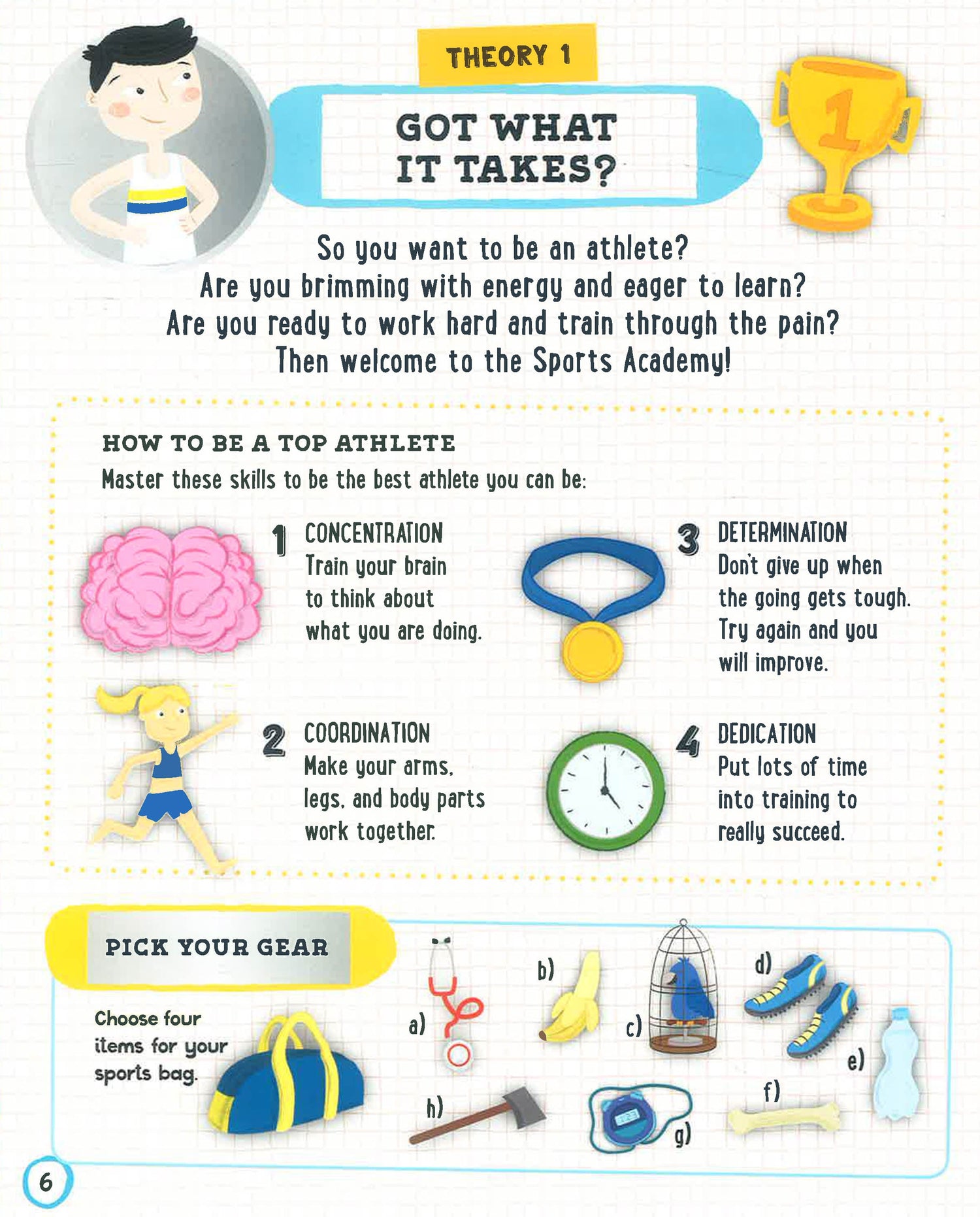 Simple tasks will test your skills and reinforce the information you read in the book. Do you know where your Achilles heel is? Can you check your pulse? How do you train and prepare for an important competition? Take a look inside to find out!