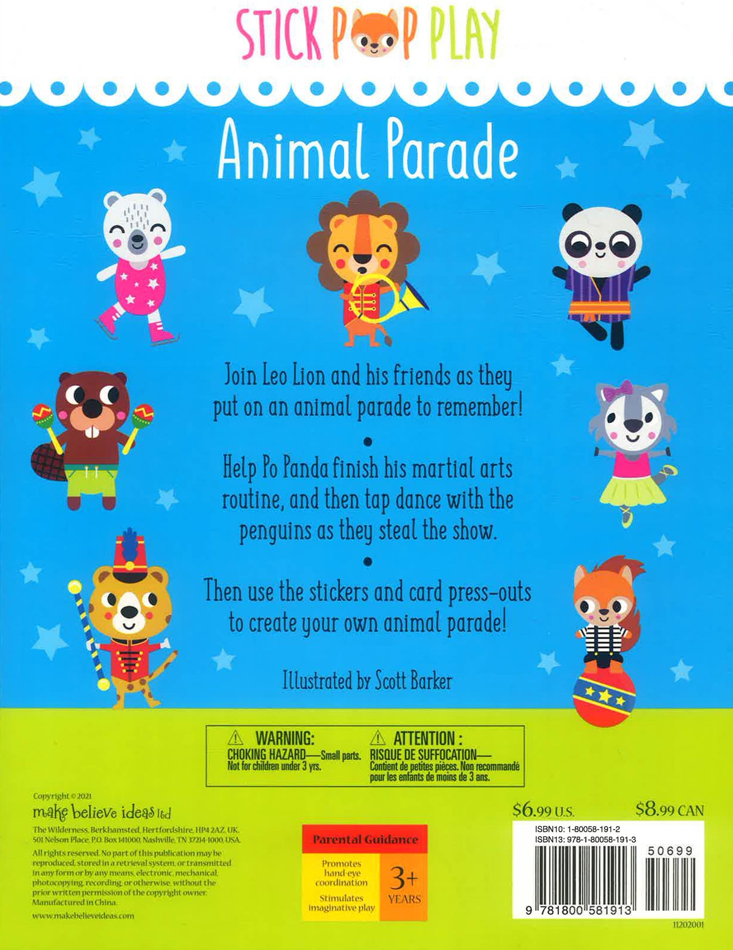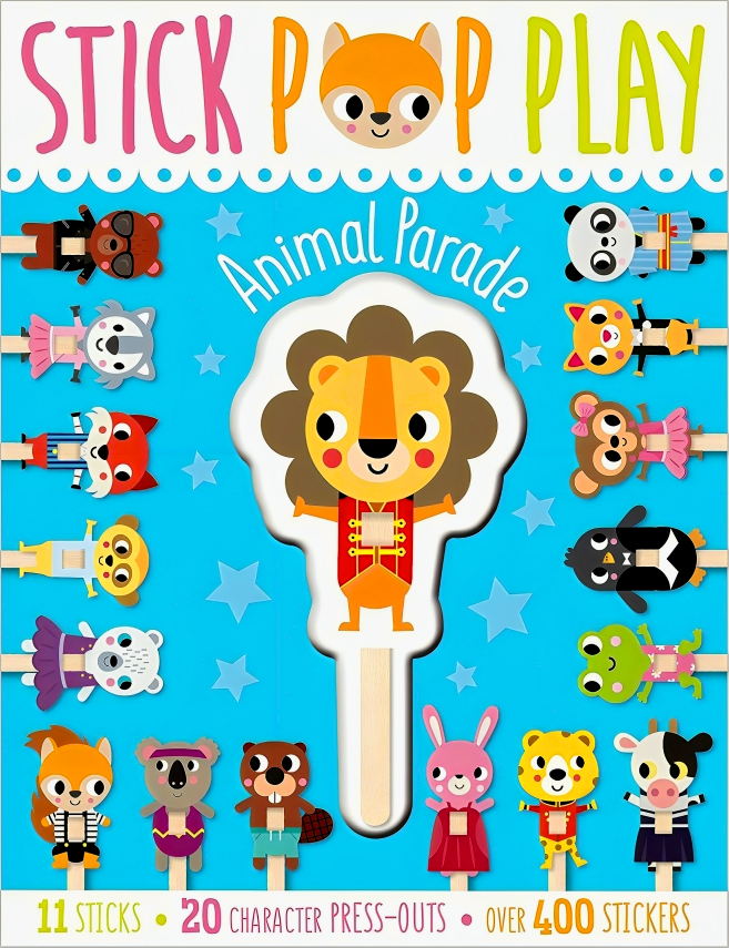 Meet animals from around the world in this awesome activity book. Stick Pop Play Animal Parade comes with 11 lollipop sticks and over 20 press-out characters to create and play with. Customize each animal with stickers and complete the activities on each page.
