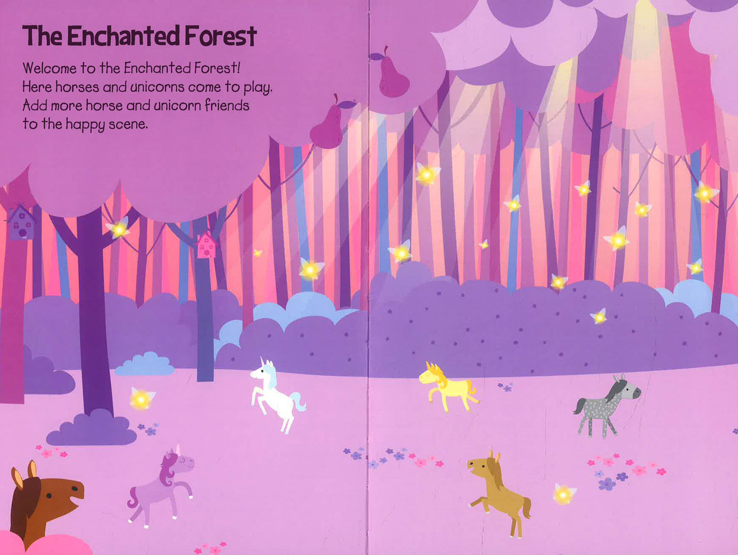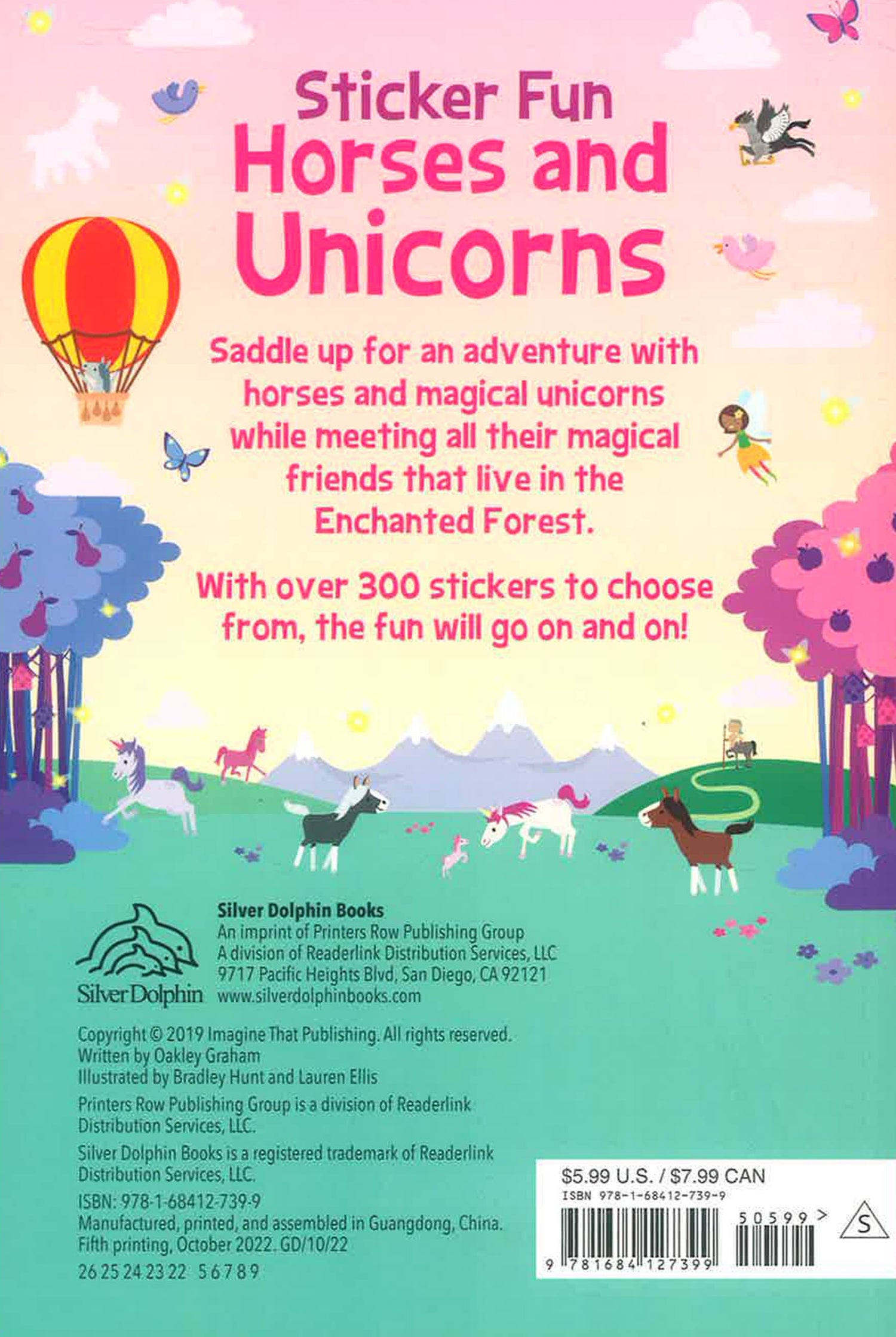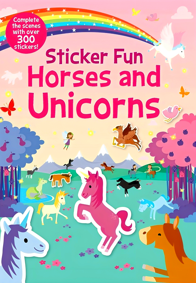 This fun-filled book features hundreds of stickers of bright and colorful horses and unicorns. Sticker Fun Horses and Unicorns has full-color pages with unique prompts for children to decorate the scenes. This adorable sticker book is sure to keep children entertained as they add cute and magical creatures to the colorful scenes.