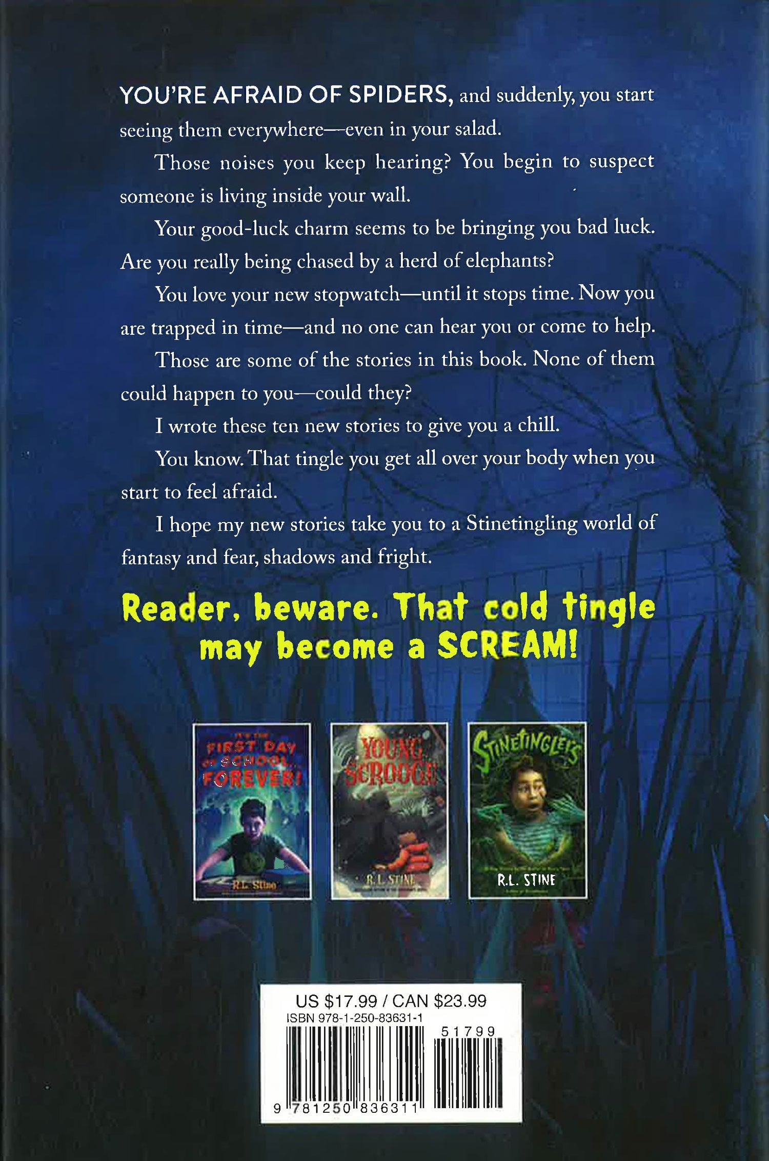 From R.L. Stine, the master of horror for young readers, comes ten new stories that are sure to send a shiver down your spine. Two kids embark on a field trip to the zoo . . . and stumble upon a creature they never expected to meet. A boy makes a machine that puts kids in charge . . . but at what cost? A child is sure his new house is haunted . . . but is it just in his head? And each story comes with a personal introduction from Stine himself. Laced with Stine’s signature humour and a hefty dose of nightmarish fun, Stinetinglers 2 is perfect for fans of Scary Stories to Tell in the Dark and Stine’s own Goosebumps books who want even more scares. These chilling tales prove that Stine’s epic legacy in the horror genre is justly earned. Dive in, and beware: you might be sleeping with the lights on tonight!