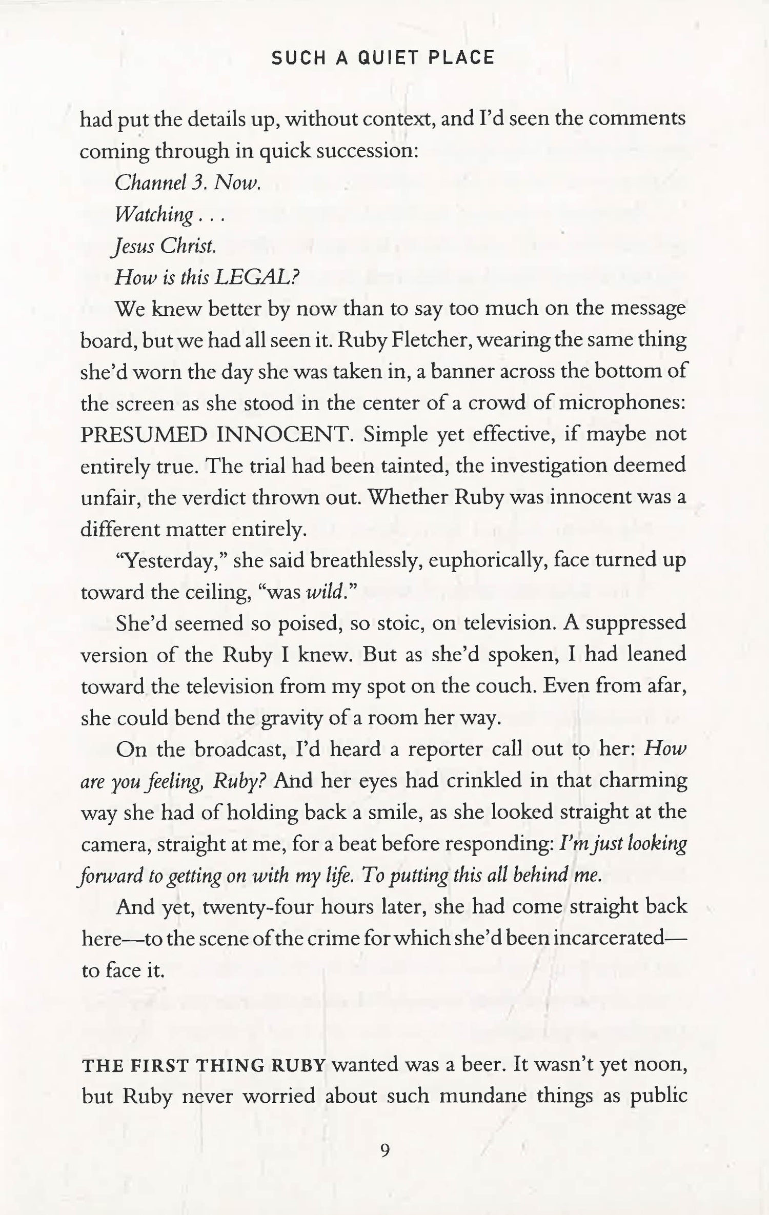 With her conviction overturned, Ruby waltzes right back to Hollow’s Edge, and into the home she shared with Harper Nash. Harper, five years older, has always treated Ruby like a wayward younger sister. But now she’s terrified. What possible good could come of Ruby returning to the scene of the crime? And how can she possibly turn her away, when she knows Ruby has nowhere to go?