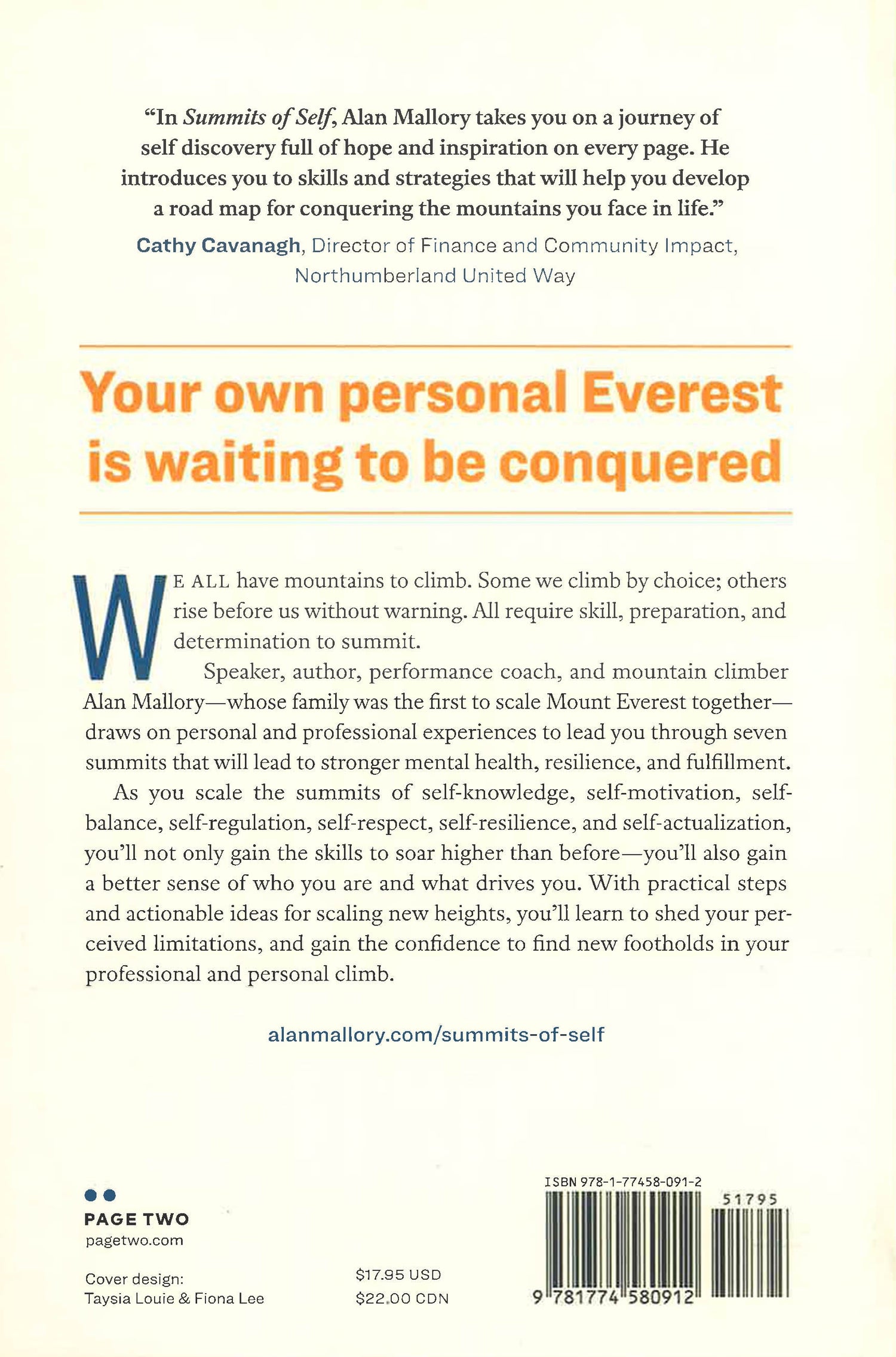 Your own personal Everest is waiting for you to climb it. We all have mountains to climb. Some we climb by choice; others rise before us without warning. All require skill, preparation, and determination to conquer. In this guide , speaker, author, performance coach, and mountain climber Alan Mallory-whose family was the first to scale Mount Everest together-draws on his personal and professional experiences to lead you through seven summits that will lead to stronger mental health, resilience, and fulfilment. With practicable steps and actionable ideas for scaling new heights, you'll learn to shed your perceived limitations, and gain the confidence to find new footholds in your professional and personal climb. As you scale the summits of self-knowledge, self-motivation, self-balance, self-regulation, self-respect, self-actualization and self-advocacy, you'll not only gain the skills to soar higher than before-you'll also gain a better sense of who you are and what drives you. Along the way, you'll learn to carve a path toward a kinder, healthier, and more productive relationship with yourself and the world around you.