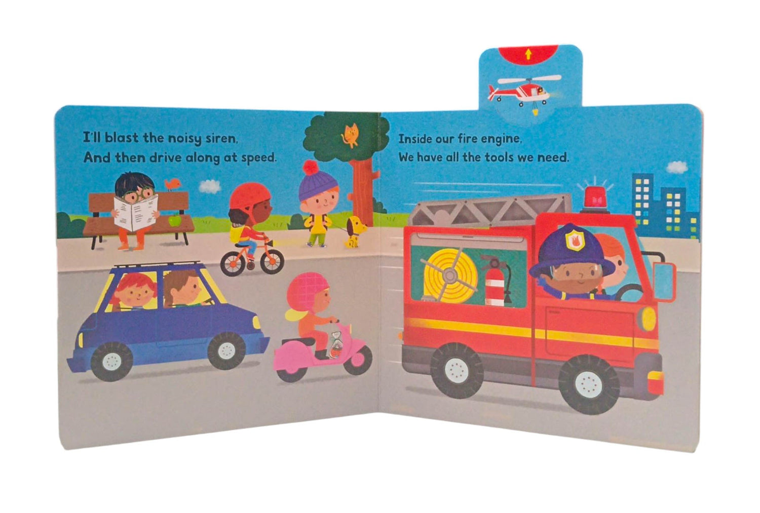 This entertaining board book takes children on an imaginary shift at a fire station. Push, pull and slide the tabs to help the firefighters slide down the pole, drive the fire engine and save the day! Little ones will love exploring the engaging scenes, illustrated by Steph Hinton. With lots to see and talk about, children will learn all about what firefighters do - and why we need them.