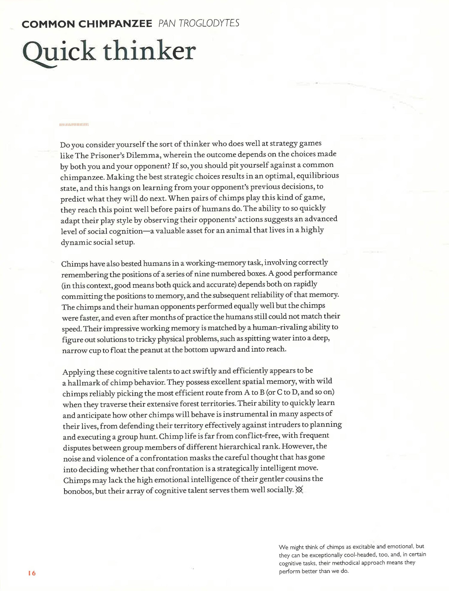 We are only beginning to understand the ways in which the animal mind is as complex as our own. A prairie dog’s vocal language is now the most sophisticated ever decoded, but their unique jump-yip poses as many questions as answers. Gorillas use sign language to describe past events to researchers, so does this mean they ruminate and relive their lives? When an ant looks in a mirror to see a dab of blue paint on its head, they try to clean it off, proving the ant is self-aware like us.