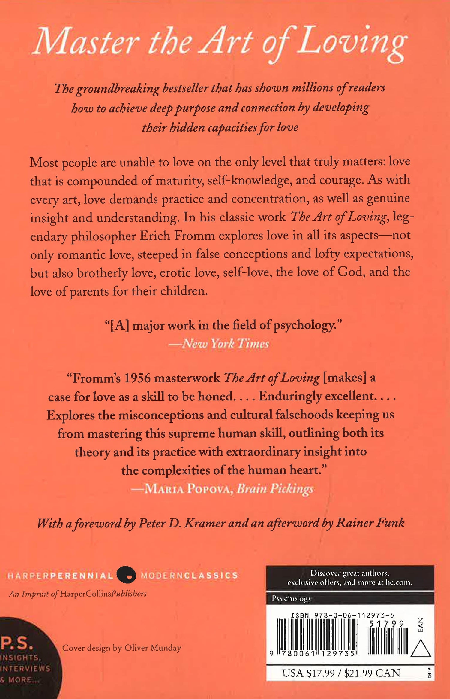 In this classic work, Fromm explores love in all its aspects - not only romantic love, steeped in false conceptions and lofty expectations, but also love of parents, children, brotherly love, erotic love, self-love, and the love of God.
