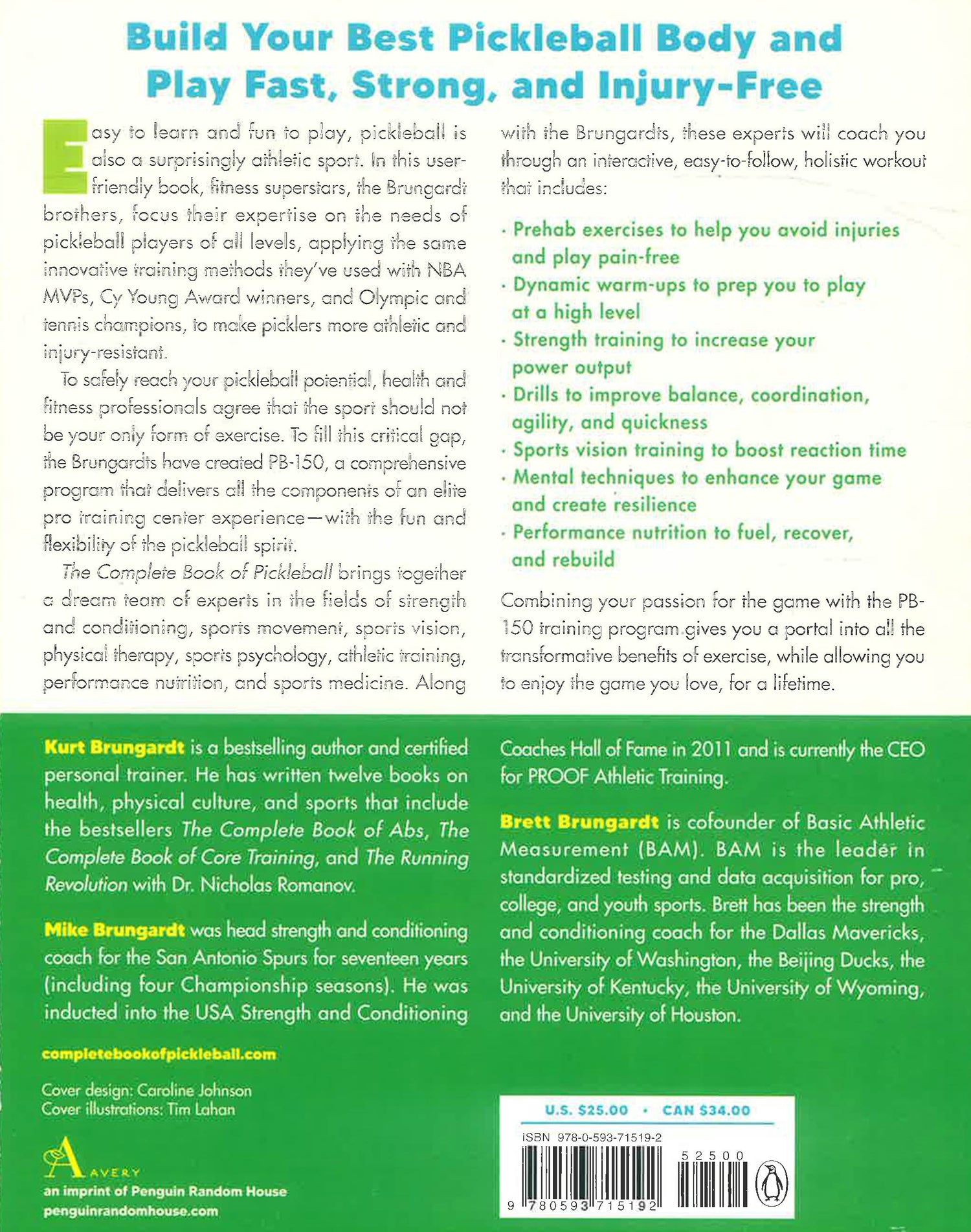 Easy to learn and fun to play, pickleball is also a surprisingly athletic sport. In this user-friendly book, fitness superstars, the Brungardt brothers, focus their expertise on the needs of pickleball players of all levels, applying the same innovative training methods they’ve used with NBA MVPs, Cy Young Award-winners, and Olympic and tennis champions, to make picklers more athletic and injury-resistant.