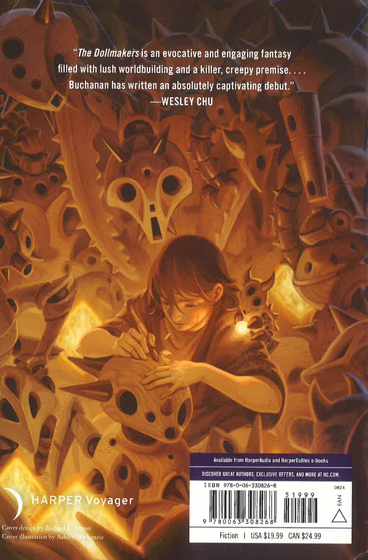 In this dark and enchanting stand-alone fantasy from debut author Lynn Buchanan--complete with black and white illustrations and a full-wrap illustrated cover--discover a world centered around destructive, all-consuming monsters; the magical dolls designed to fight this force; and the artisans tasked with creating demon-slaying dolls. A touch cozy fantasy and a touch horror, The Dollmakers is perfect for fans of Studio Ghibli films, the works of TJ Klune and Travis Baldree, and readers of Juniper & Thorn and The Goblin Emperor.