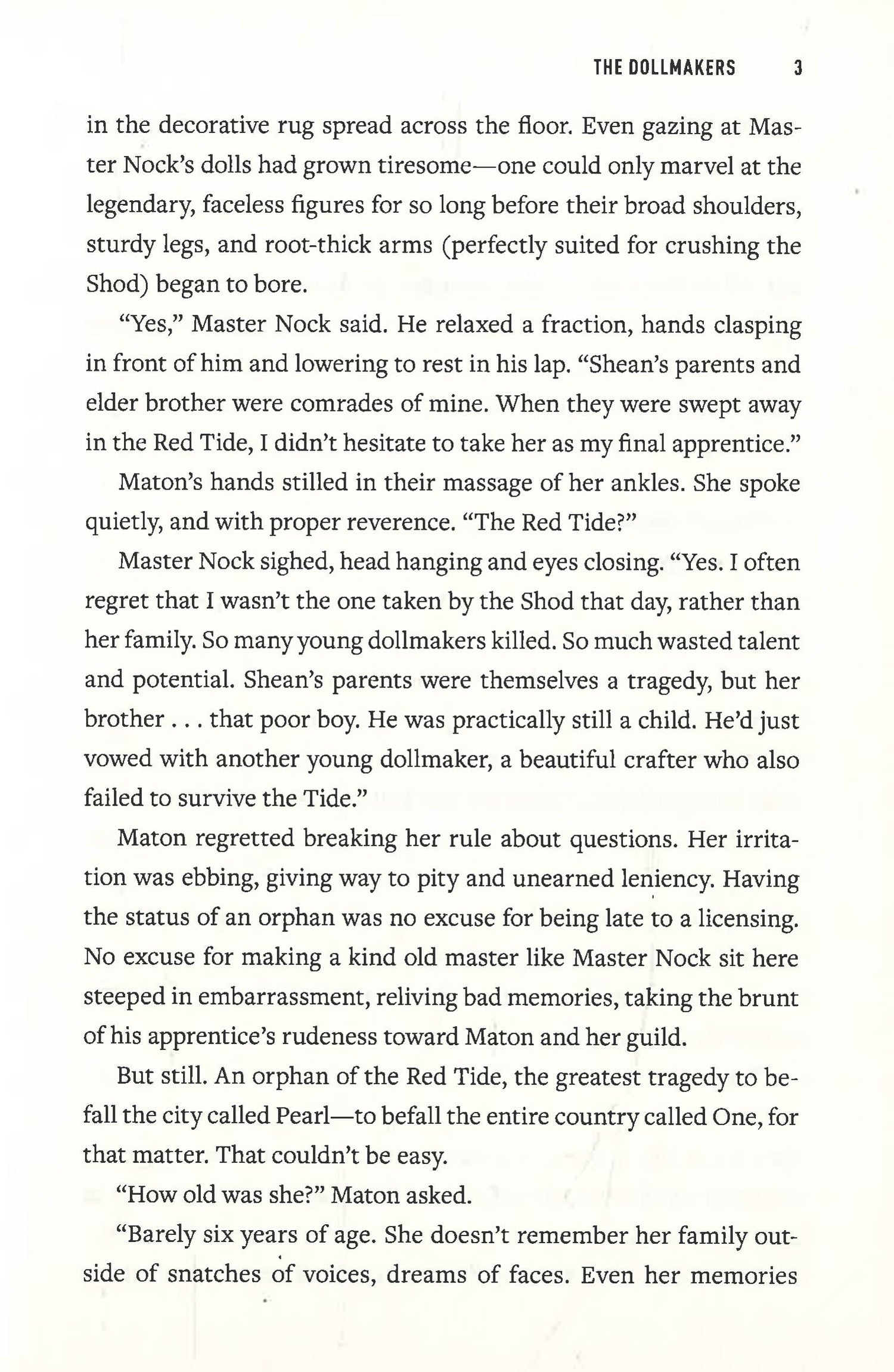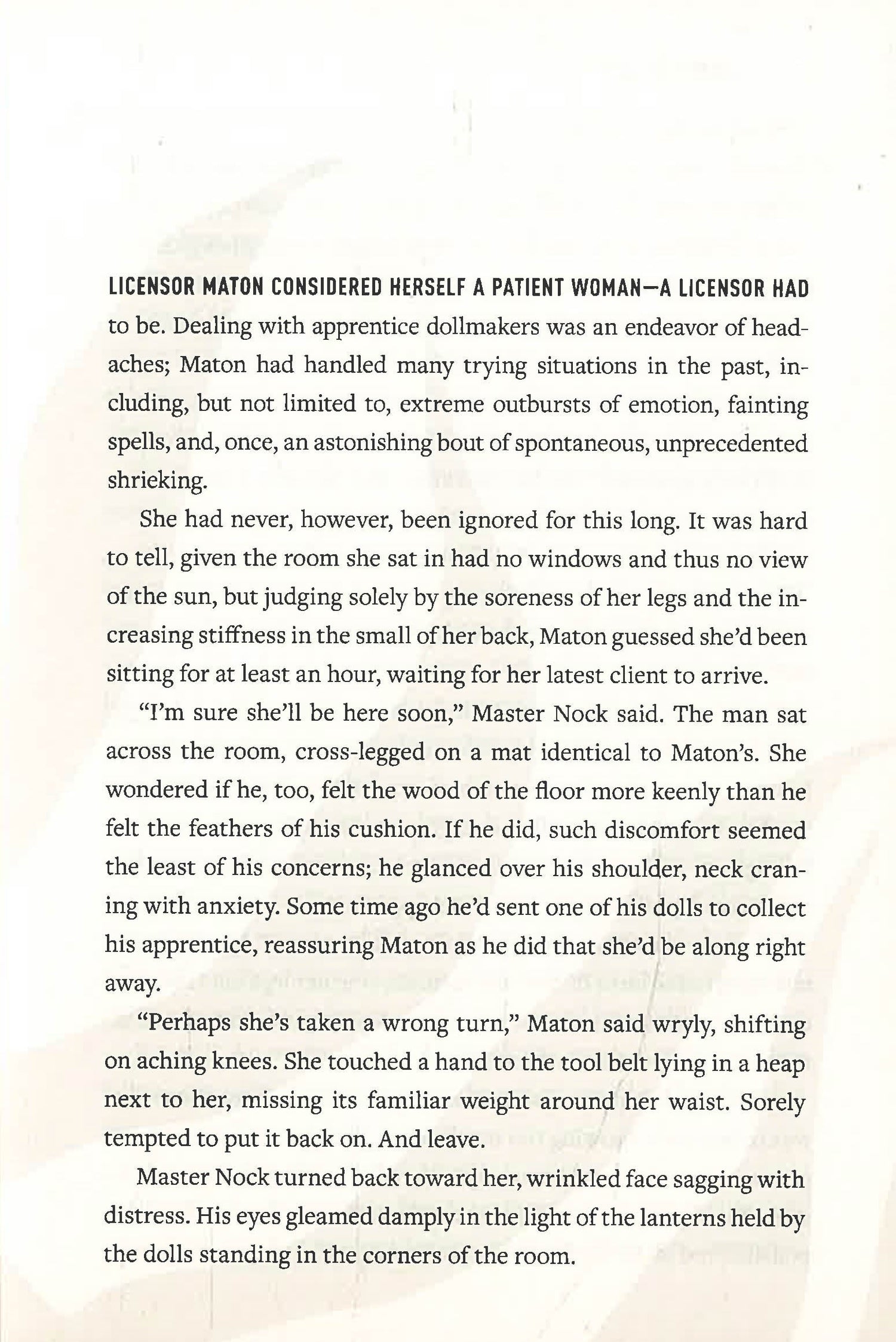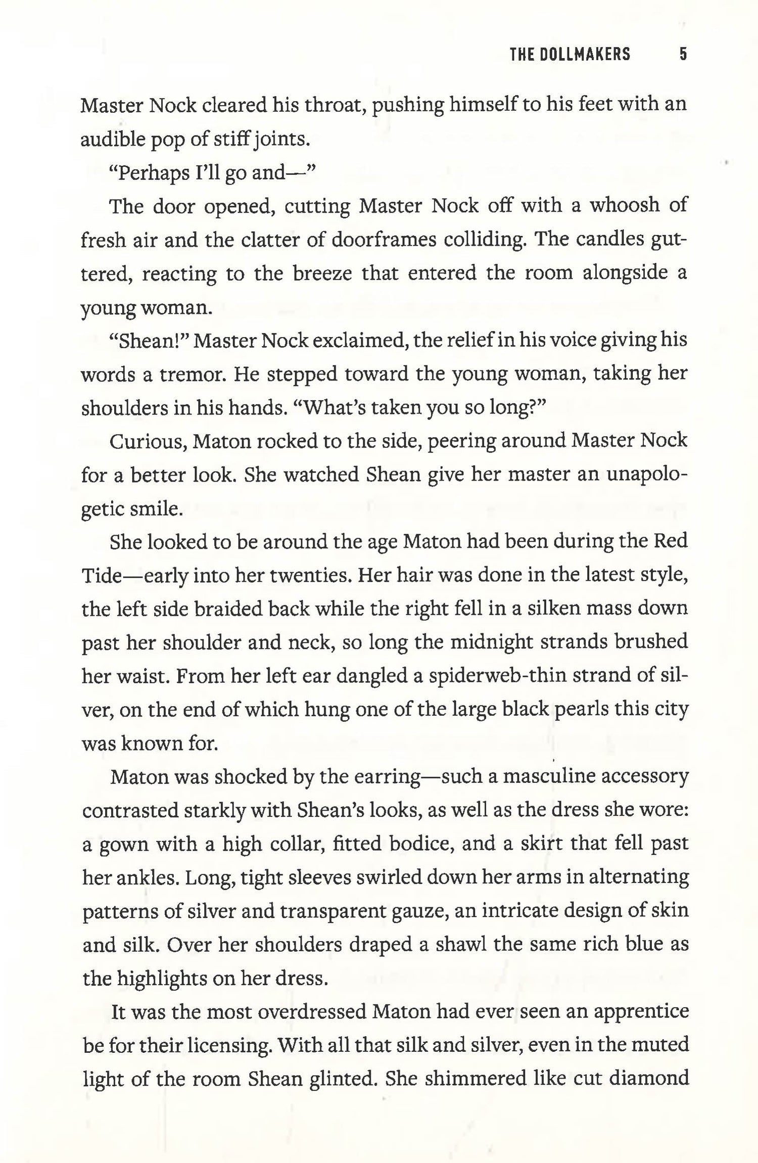 Apprentice Shean of Pearl is a brilliant dollmaker. With her clever dolls, she intends to outsmart and destroy the Shod, once and for all—a destiny she’s worked her whole life toward accomplishing. But when the time comes for her dolls to be licensed, she’s told her work is too beautiful and delicate to fight. A statement that wounds and infuriates her; the Shod killed everyone she loved. How could her fate be anything but fighting them?