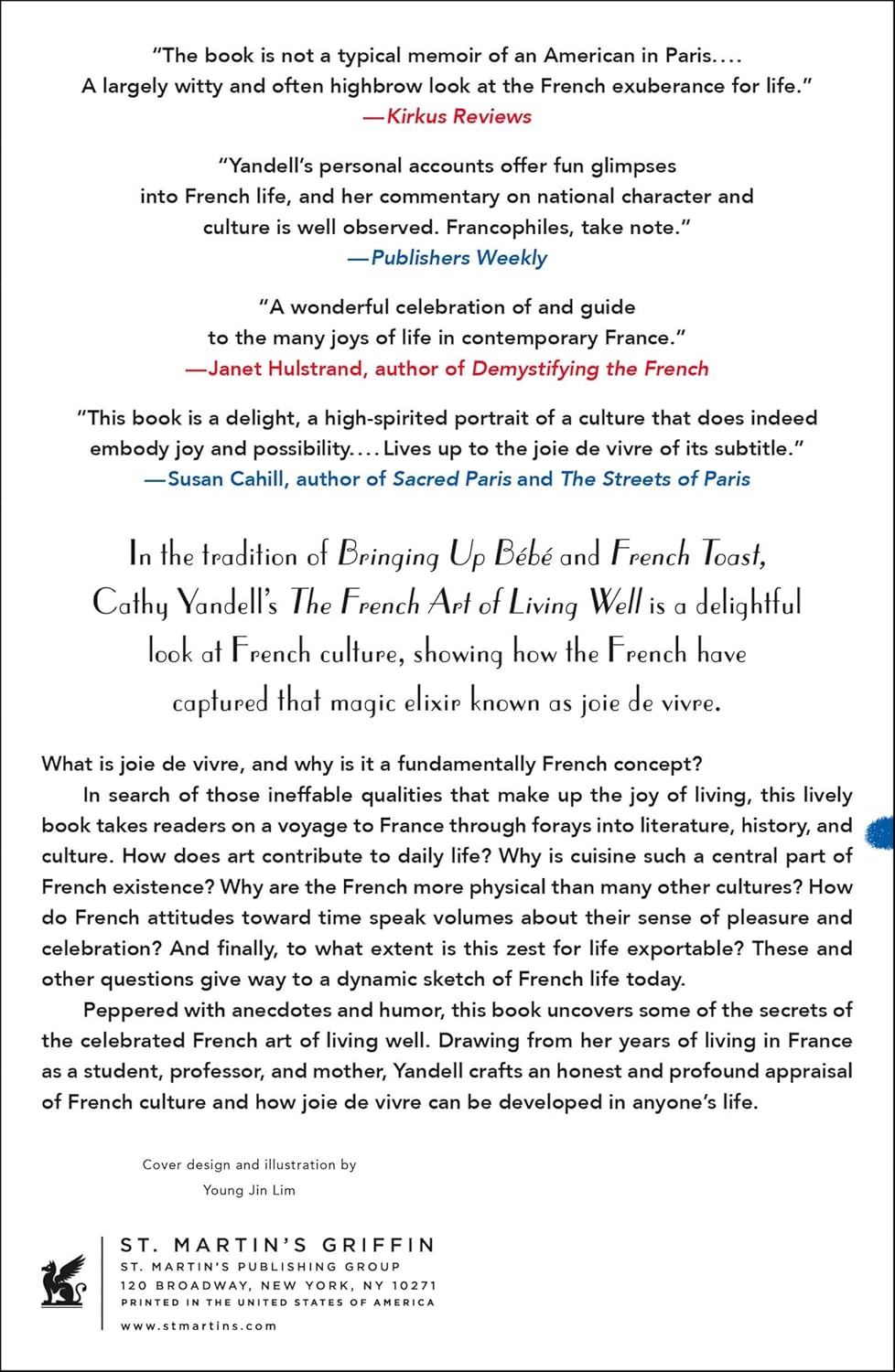 Peppered with anecdotes and humor, this book uncovers some of the secrets of the celebrated French art of living well. Drawing from her years of living in France as a student, professor, and mother, Yandell crafts an honest and profound appraisal of French culture and how la joie de vivre can be developed in anyone’s life.