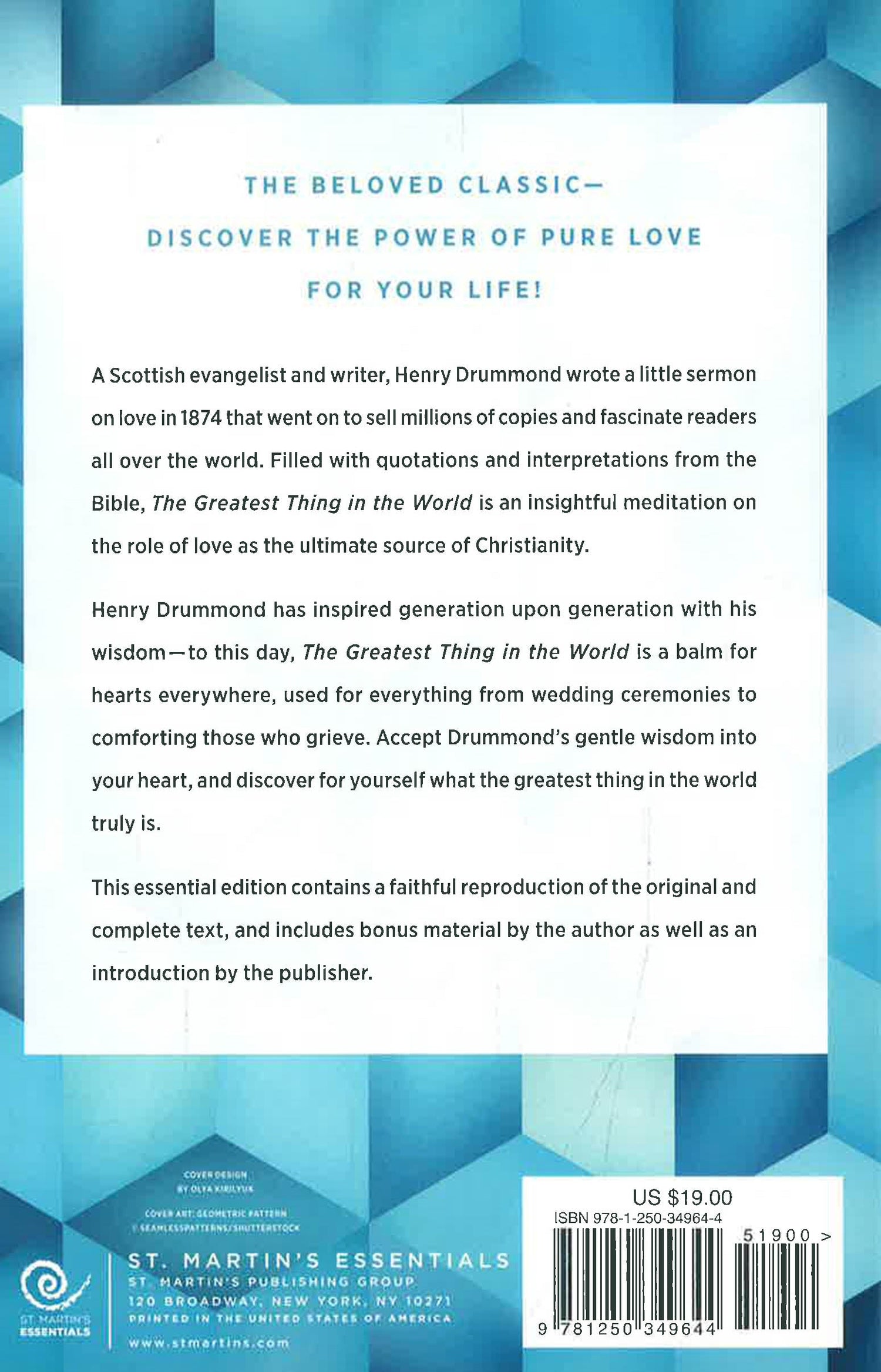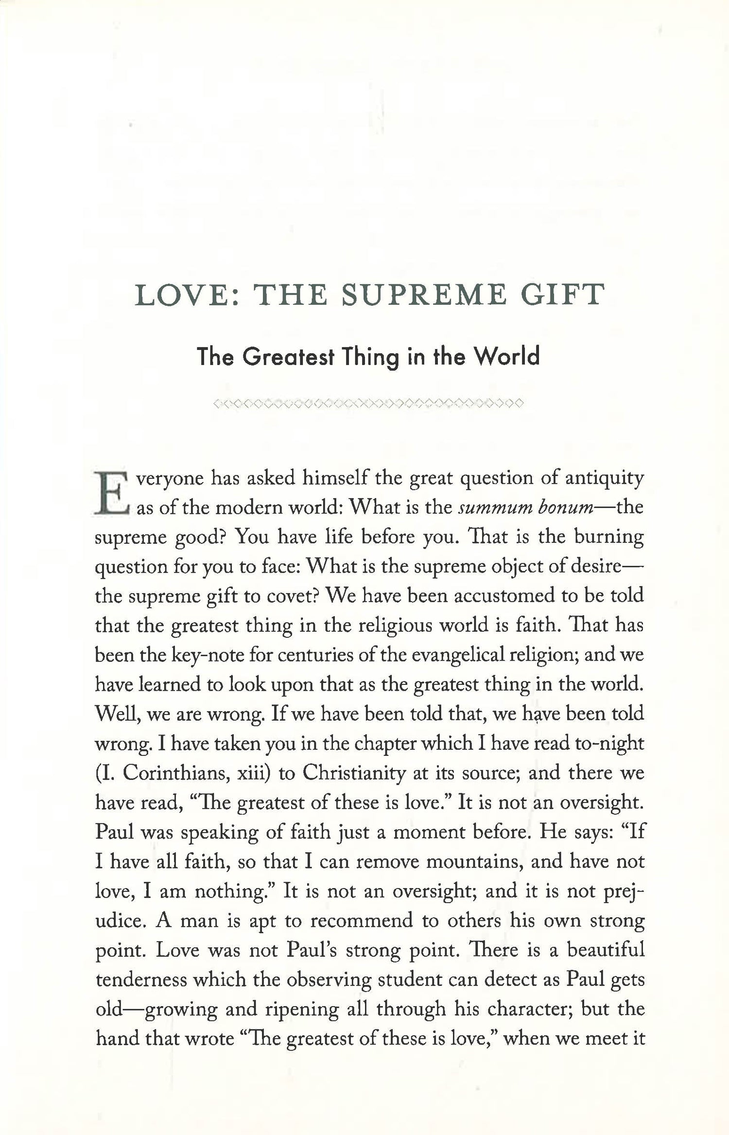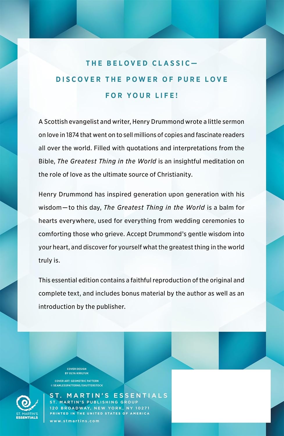 Henry Drummond has inspired generation upon generation with his wisdom--to this day, The Greatest Thing in the World is a balm for hearts everywhere, used for everything from wedding ceremonies to comforting those who grieve. Accept Drummond's gentle wisdom into your heart, and discover for yourself what the greatest thing in the world truly is.