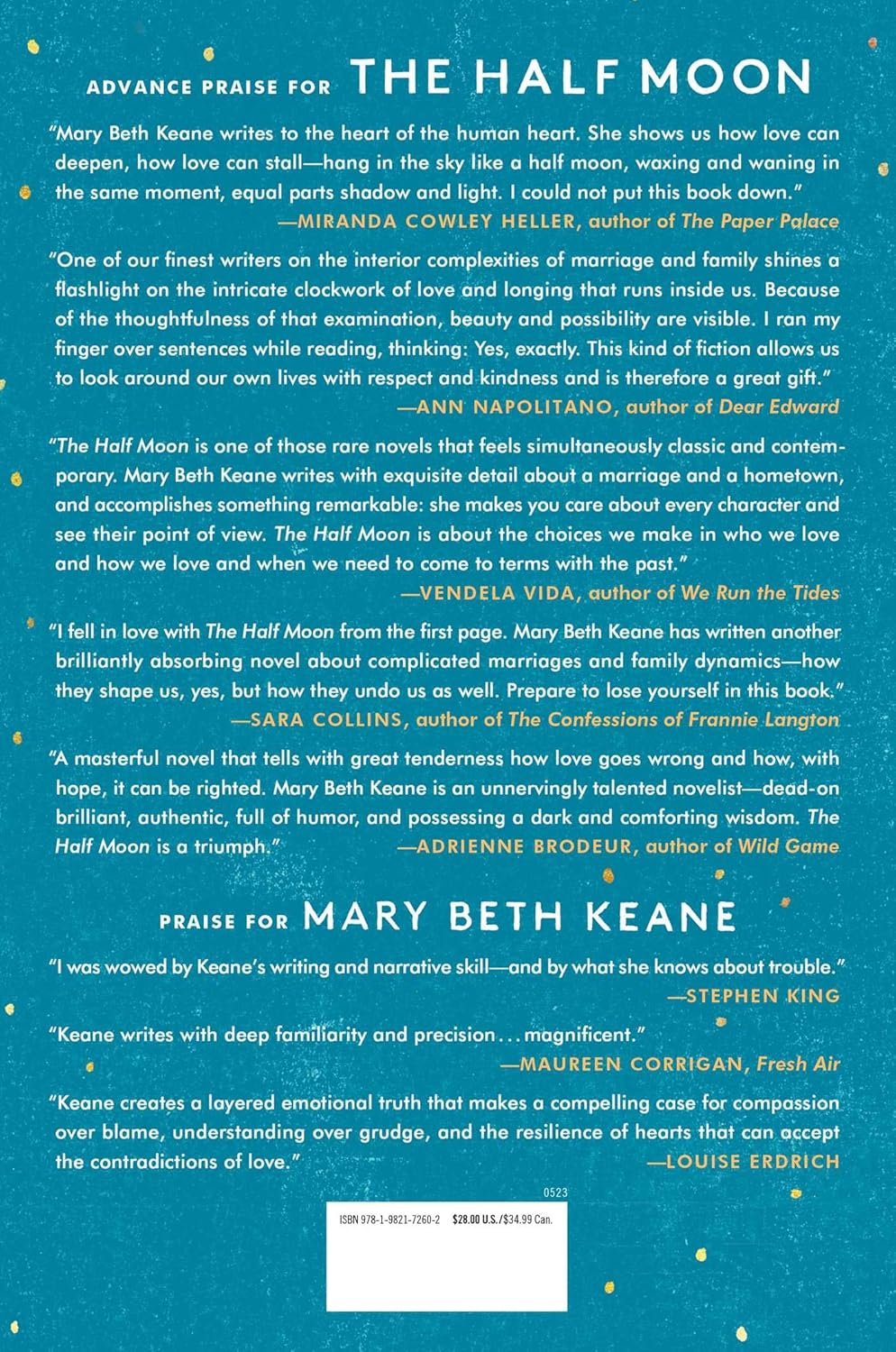 “A quick and impactful read that will stay with you long after you finish it” (theSkimm), The Half Moon takes place over the course of one week when Malcolm learns shocking news about Jess, a patron of the bar goes missing, and a blizzard hits the town of Gillam, trapping everyone in place. With a deft eye and generous spirit, Mary Beth Keane explores the disappointments and unexpected consolations of midlife, the many forms forgiveness can take, the complicated intimacy of small-town living, and what it means to be a family.