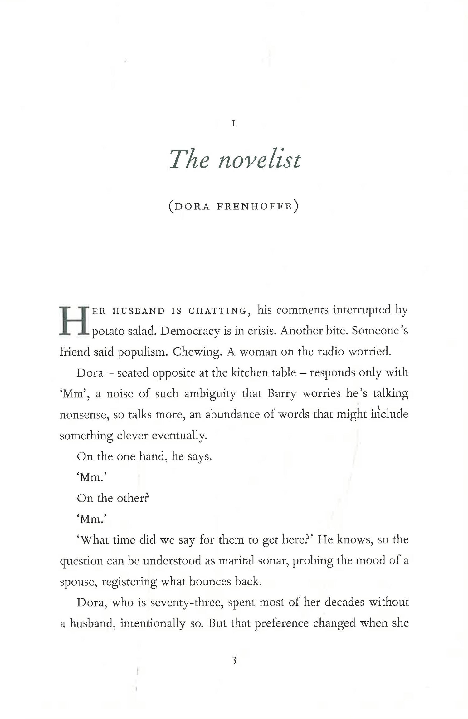 Dora Frenhofer, a once successful but now aging and embittered novelist, knows her mind is going. She is determined, however, to finish her final book, and reverse her fortunes, before time runs out. Alone in her London home during the pandemic, she creates, and is in turn created by, the fascinating real characters from her own life.