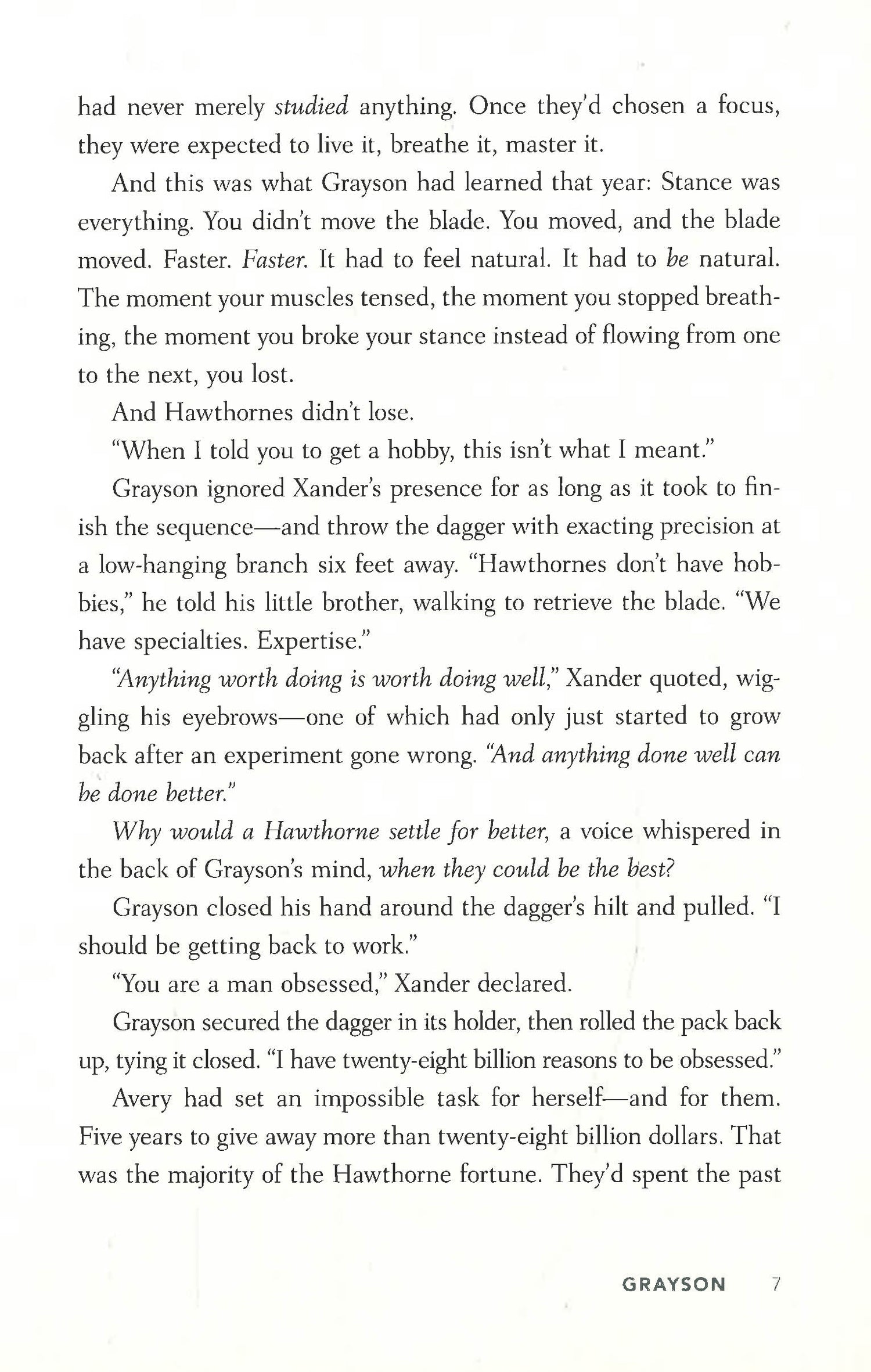 Grayson Hawthorne was raised as the heir apparent to his billionaire grandfather, taught from the cradle to put family first. Now the great Tobias Hawthorne is dead and his family disinherited, but some lessons linger. When Grayson's half-sisters find themselves in trouble, he swoops in to do what he does best: take care of the problem--efficiently, effectively, mercilessly. And without getting bogged down in emotional entanglements.