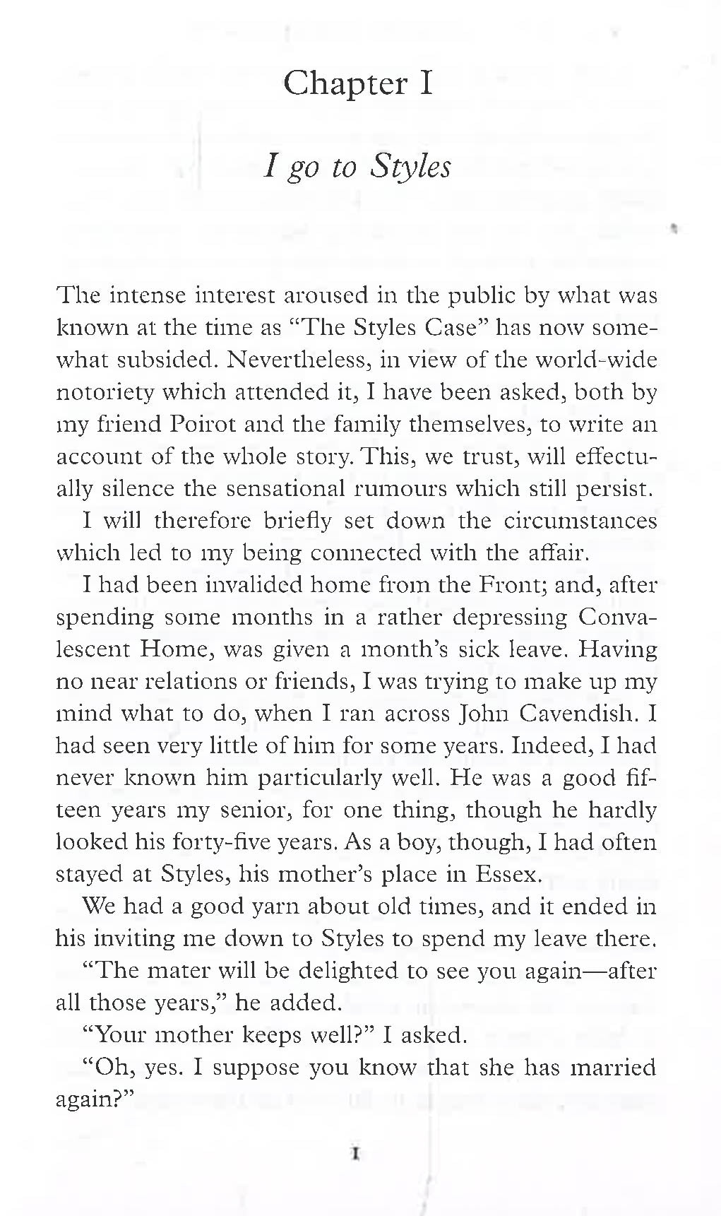 When Arthur Hastings is injured during World War One and sent back to England, his old friend John Cavendish invites him to recuperate at his country house, Styles Court. Despite the beautiful surroundings, Hastings detects that all is not well amongst the inhabitants of the house. His suspicions are confirmed when John's wealthy step-mother, Emily Inglethorp, is found dead in her bedroom; she has been poisoned and the door is locked from the inside. Who could have murdered her and how did they do it? Hastings calls on his old friend Hercule Poirot to uncover the truth of this baffling crime.