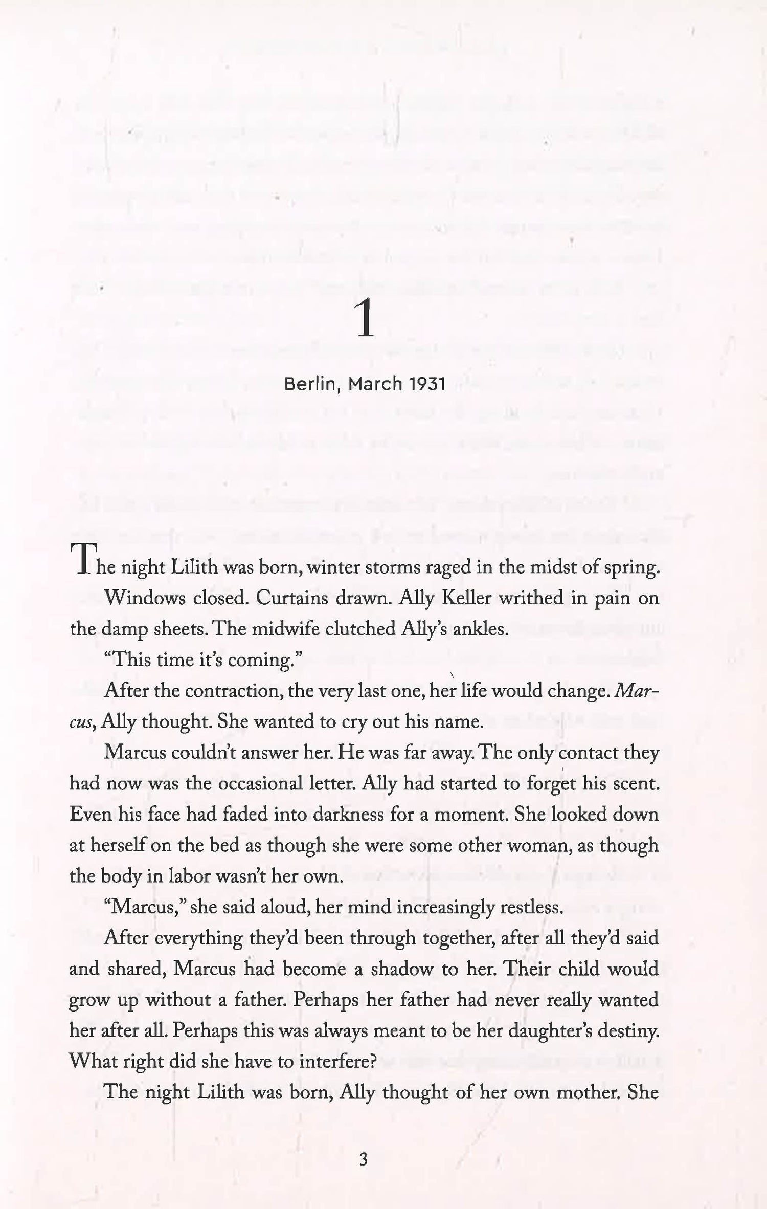 Berlin, 1931: Ally Keller, a talented young poet, is alone and scared when she gives birth to a mixed-race daughter she names Lilith. As the Nazis rise to power, Ally knows she must keep her baby in the shadows to protect her against Hitler’s deadly ideology of Aryan purity. But as she grows, it becomes more and more difficult to keep Lilith hidden so Ally sets in motion a dangerous and desperate plan to send her daughter across the ocean to safety.