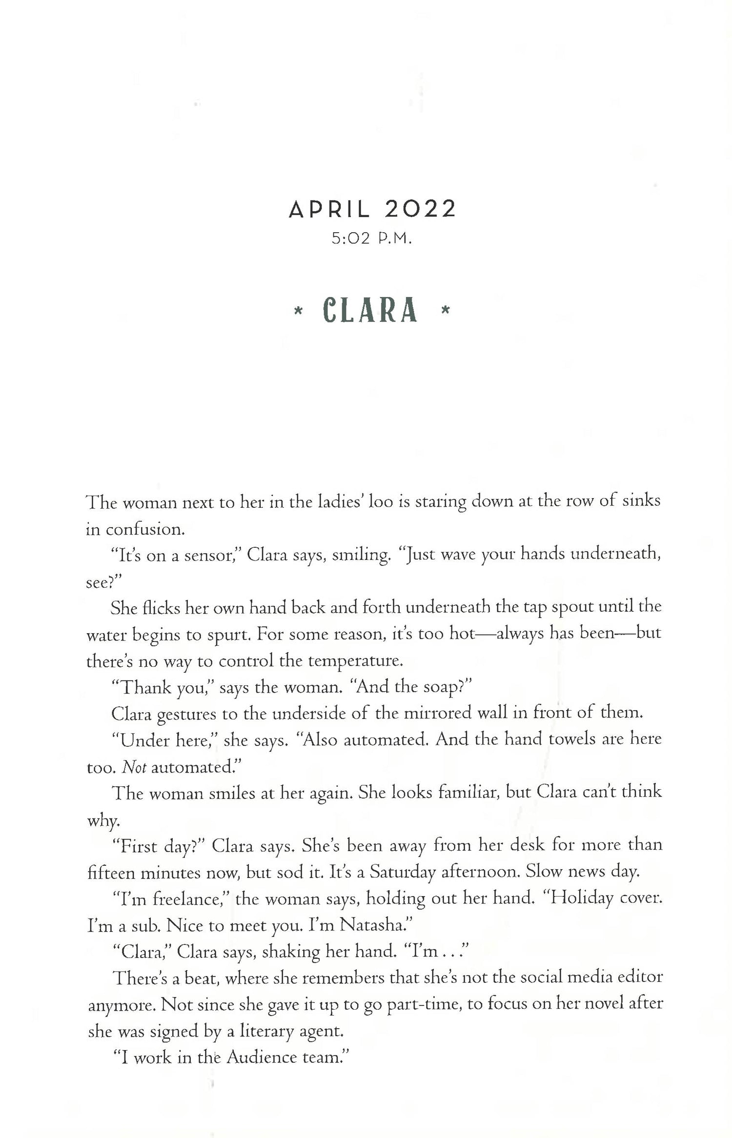 20 years later, Clara has a high-profile job and a handsome husband. But despite the trappings of success, she isn't happy, and she knows that a piece of her heart still belongs to Benjamin, the boy she fell in love with years earlier. The boy whose life she fears she ruined.