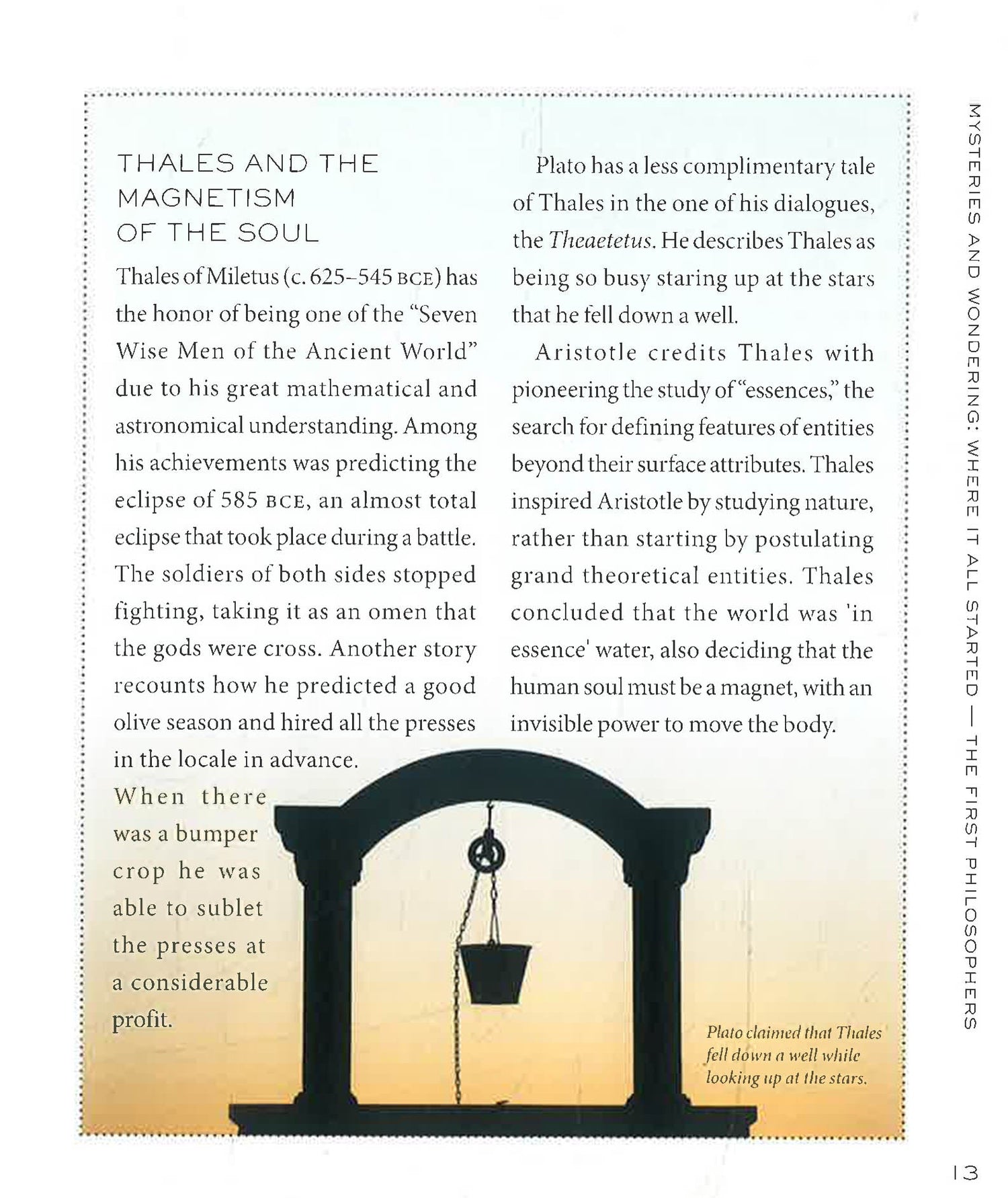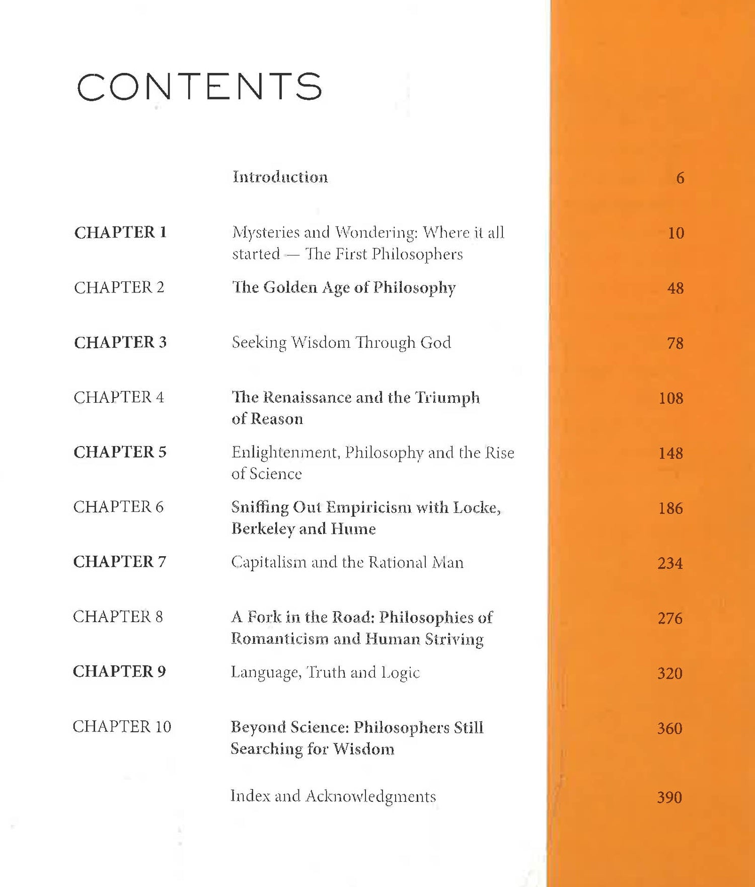 The book takes a two-pronged approach that looks at the chronological development of philosophical thought and the people behind the different schools of thinking.