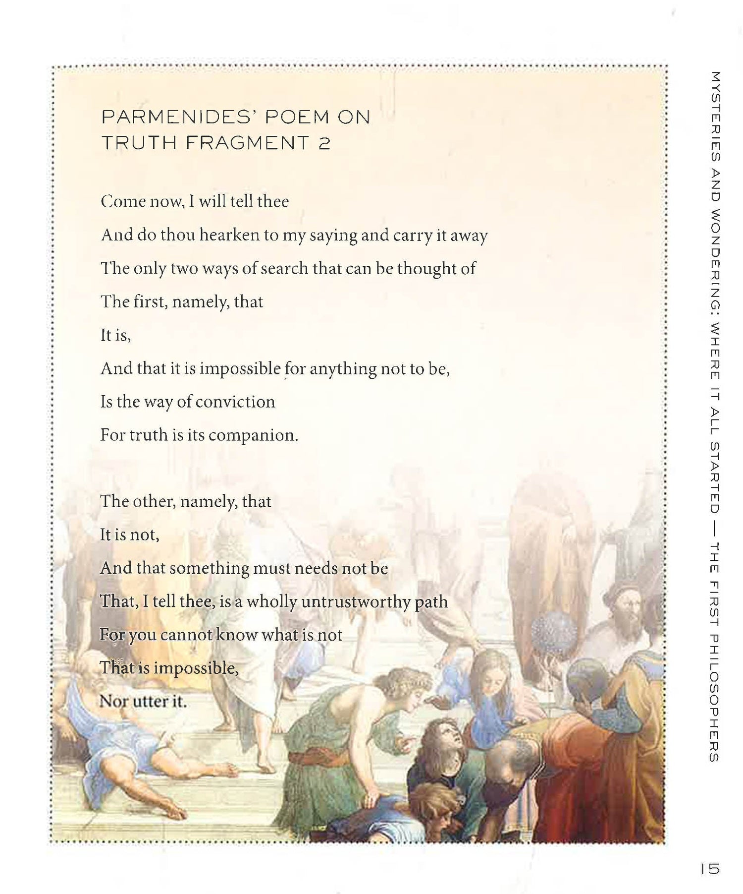 It also discusses the "big questions", such as: What is truth? What kind of person is it good to be? What do we know and how do we know it? It considers the relationship between philosophy and religion, and the problem of morality.