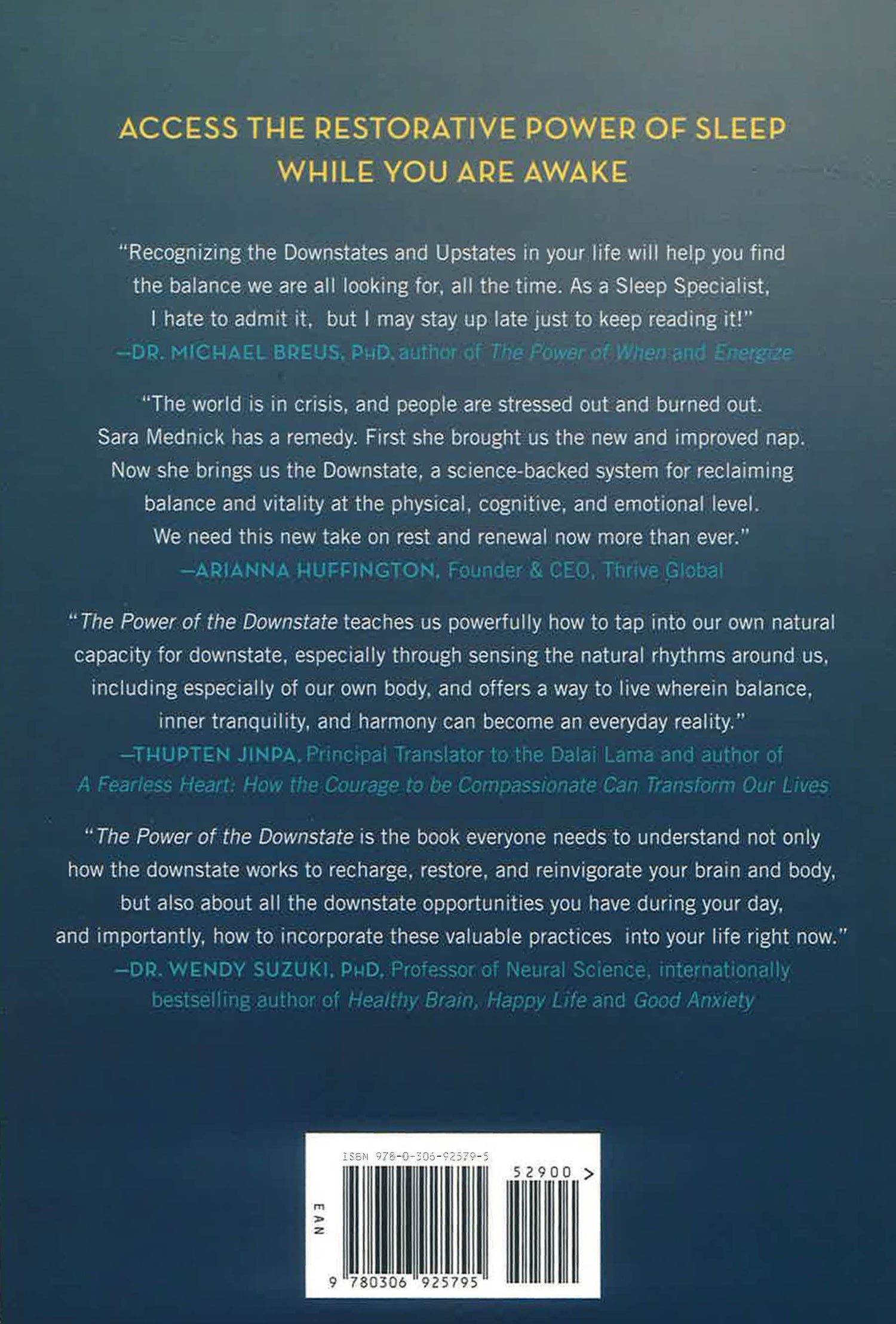 If you're like most people, the relentless daily grind of go-go-go, do-do-do, can run down your energy and deplete your resources. While most of us find our lives full of "Upstate" moments that rev up our stress engines, it doesn't have to be this way. World-renowned sleep researcher Sara C. Mednick, PhD, shows us how we can access the most replenishing and repairing aspects of sleep through activities and moments that happen during our day by diving into our "Downstate." Dr. Mednick shows that bringing ourselves back to the Downstate is critical for our health, well-being, and cognitive longevity.