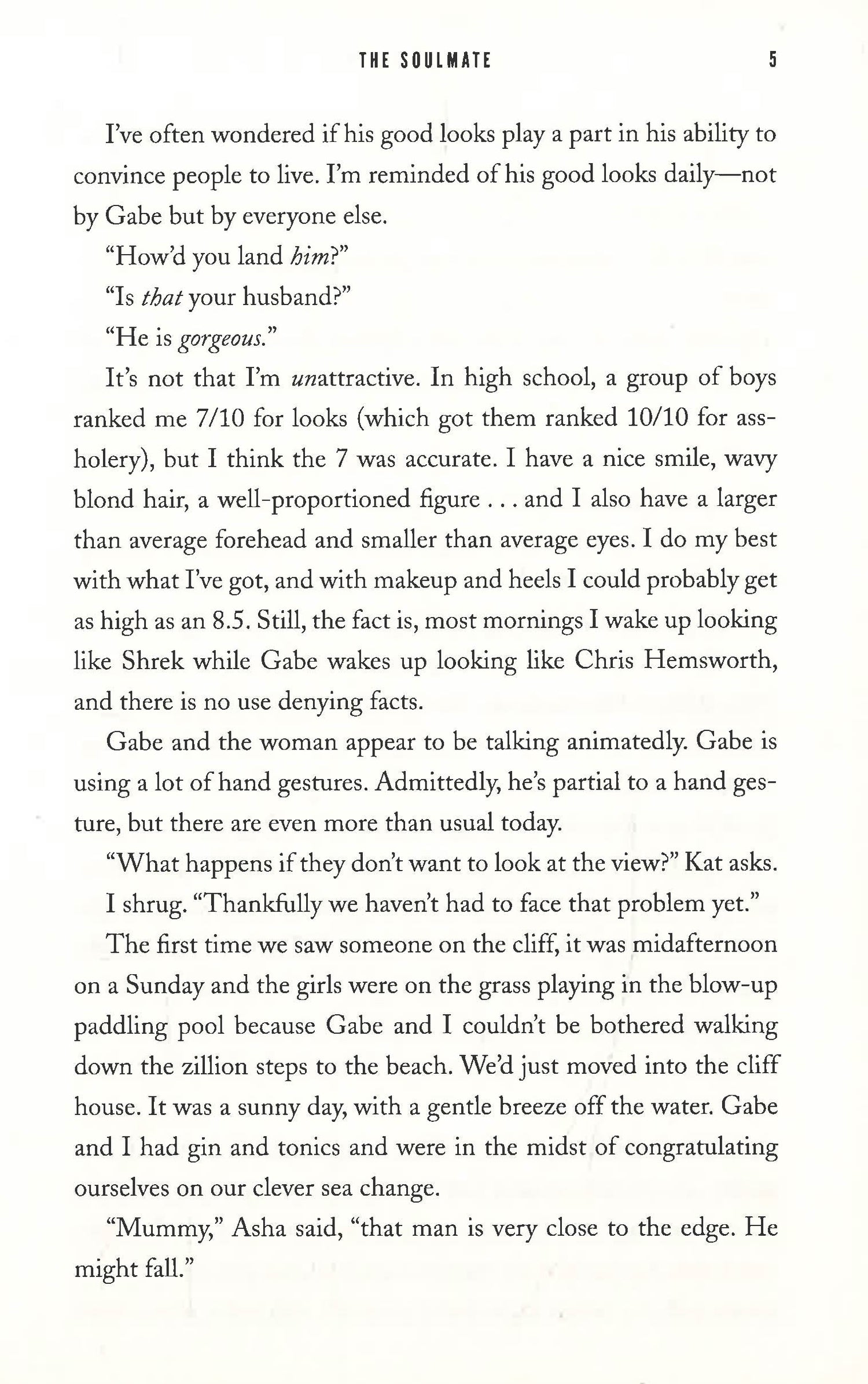Until one day, he doesn't. When Pippa discovers Gabe knew the victim, the questions spiral. . . .Did the victim jump? Was she pushed? And would Gabe, the love of Pippa's life, her soulmate . . . lie? As the perfect façade of their marriage begins to crack, the deepest and darkest secrets begin to unravel. Because sometimes, the most convincing lies are the ones we tell ourselves.