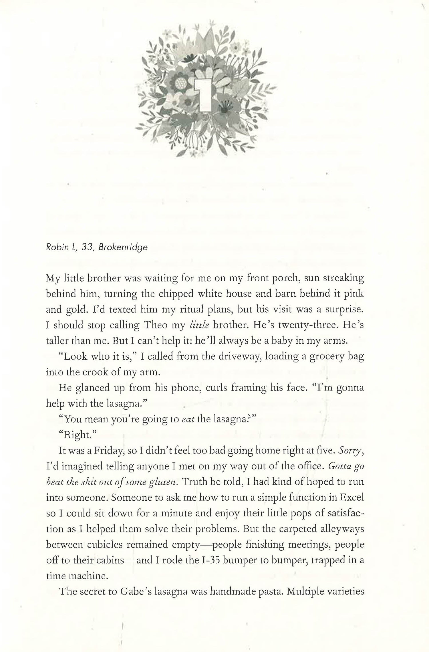 How could Gabe, of all people, be asking her to venture out into the murky waters of 21st century online dating? As her underemployed brother, Theo, points out, it’s “only” for a year, and it’s basically Gabe's last request.