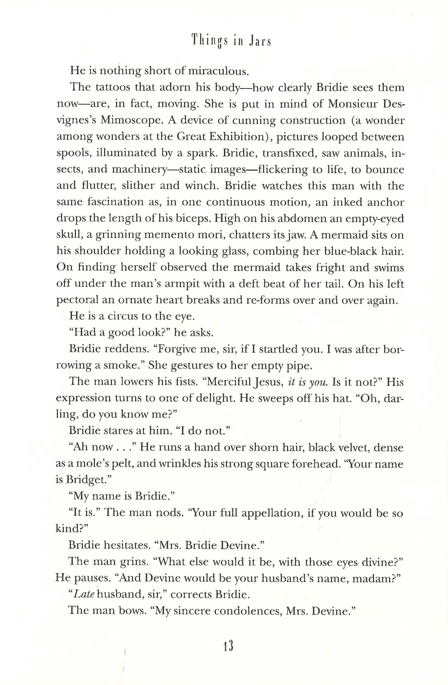Blending darkness and light, history and folklore, Things in Jars is a spellbinding Gothic mystery that collapses the boundary between fact and fairy tale to stunning effect and explores what it means to be human in inhumane times.