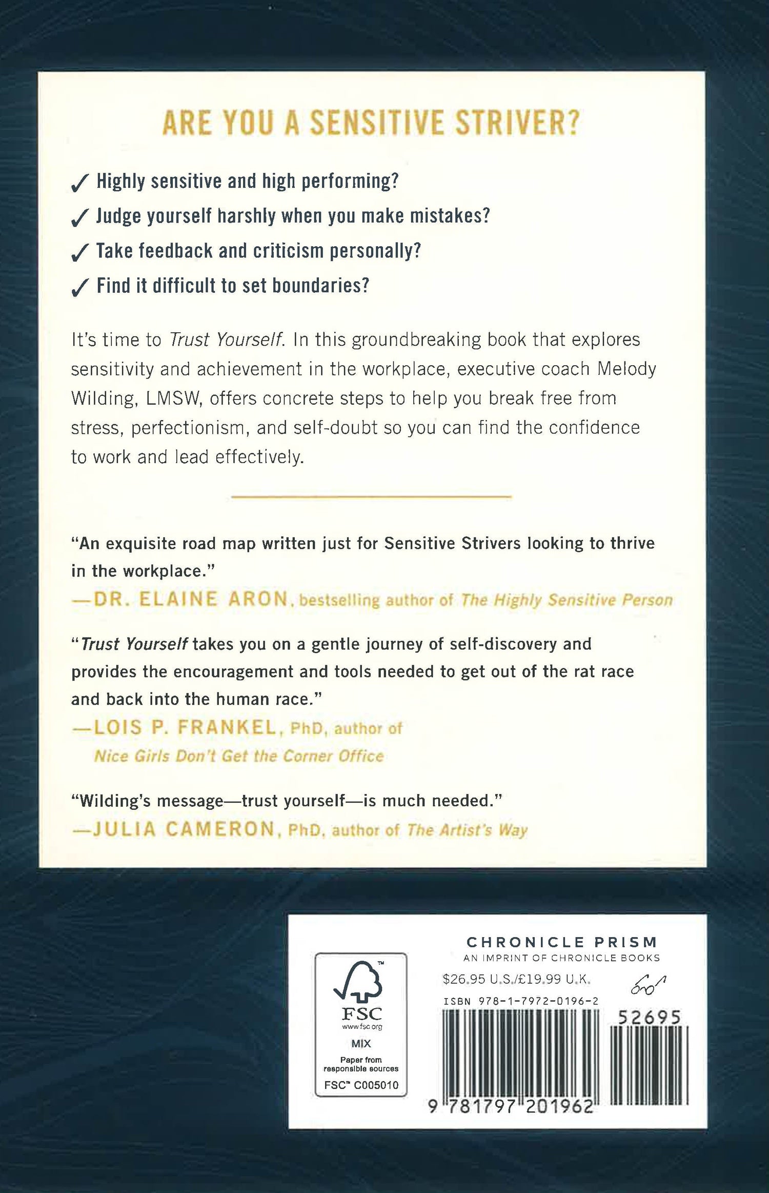 It's time to Trust Yourself. Being highly attuned to your emotions, your environment, and the behavior of others can be the keys to success, but they can also lead to overthinking everything and burnout. Human behavior expert and executive coach Melody Wilding, LMSW has spent the past ten years working with Sensitive Strivers like you. In this groundbreaking book, she draws on decades of research and client work to examine the intersection of sensitivity and achievement in the workplace and offer neuroscience-based strategies you can use to reclaim control of your life and reach your full potential.