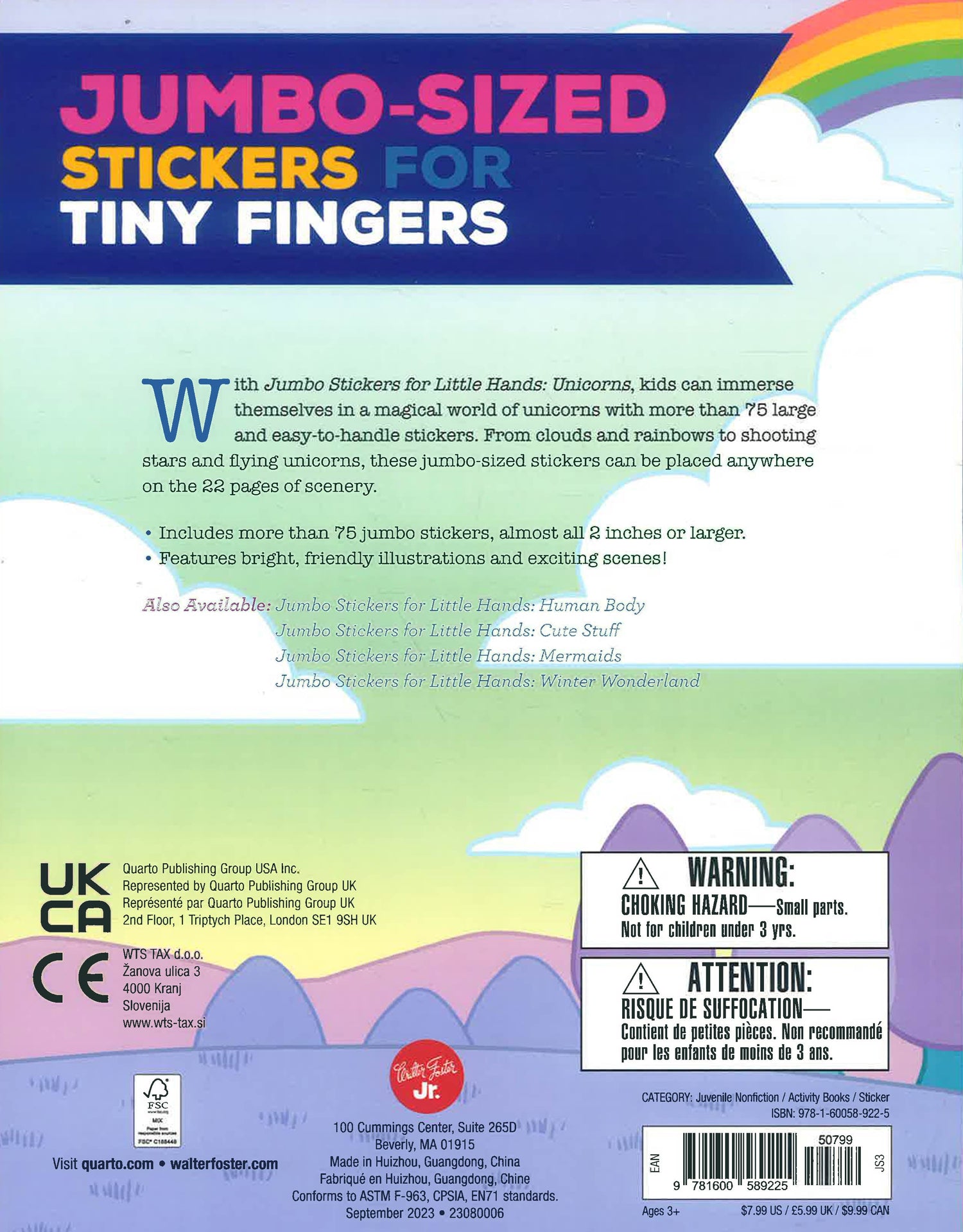 With more than 75 stickers and 11 different colorful scenes, Jumbo Stickers for Little Hands: Unicorns is full of magical possibilities. The jumbo stickers―all 2 inches or larger―are easier for little fingers to handle, and the playful illustrations are sure to inspire big imaginations.