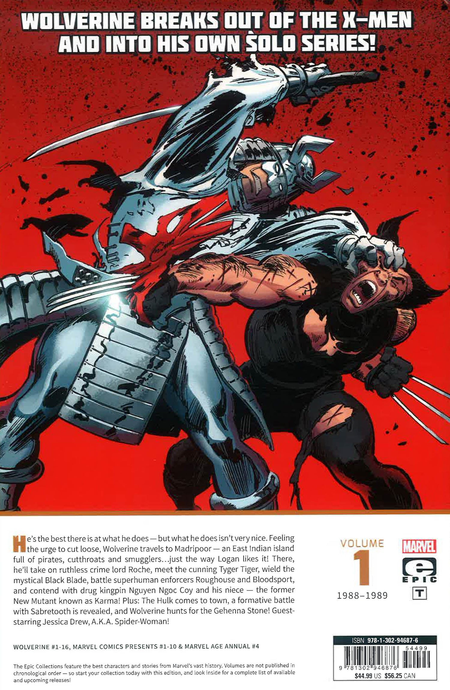 He's the best there is at what he does - but what he does isn't very nice. And now Wolverine has broken out of the X-Men and into his own solo series! Feeling the urge to cut loose, Wolverine travels to Madripoor, an East Indian island full of pirates, cutthroats and smugglers - just the way Logan likes it! There, he'll take on ruthless crimelord Roche, meet the cunning Tyger Tiger, wield the mystical Black Blade, battle superhuman enforcers Roughouse and Bloodsport and contend with drug kingpin Nguyen Ngoc Coy and his niece, the former New Mutant known as Karma! Plus: The Hulk comes to town, a formative battle with Sabretooth is revealed and Wolverine hunts for the Gehenna Stone! Guest-starring Jessica Drew, A.K.A. Spider-Woman! Collecting WOLVERINE (1988) #1-16 and material from MARVEL COMICS PRESENTS (1988) #1-10 and MARVEL AGE ANNUAL #4.