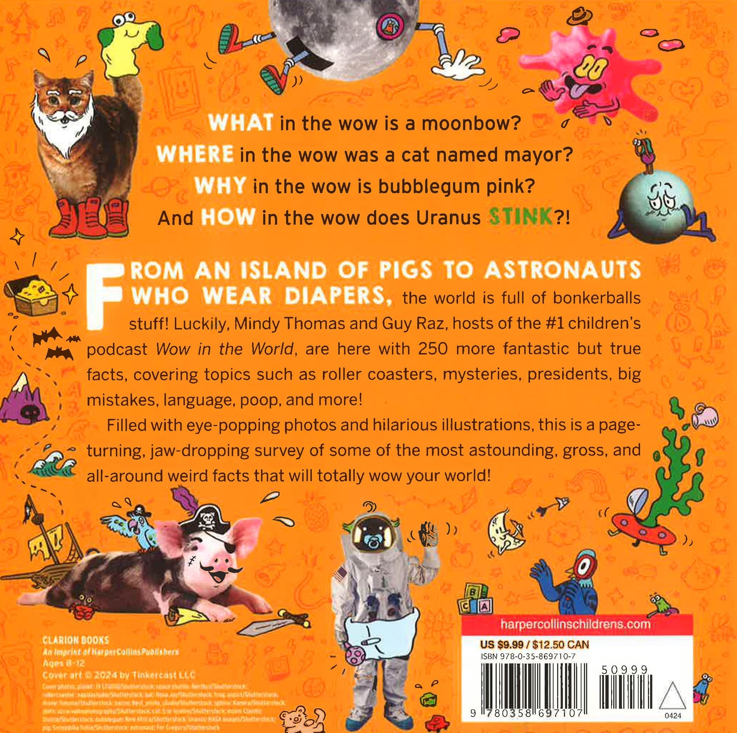 From an island of pigs to astronauts who wear diapers, the world is full of bonkerballs stuff! Luckily, Mindy Thomas and Guy Raz, hosts of the #1 children’s podcast Wow in the World, are here with 250 more fantastic but true facts, covering topics such as roller coasters, mysteries, presidents, big mistakes, language, poop, and more!