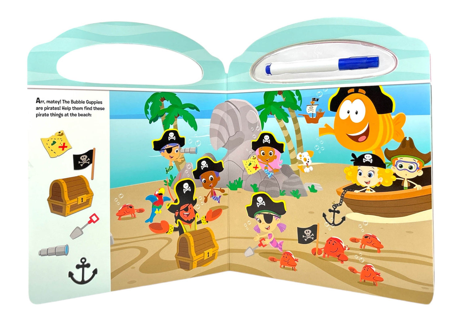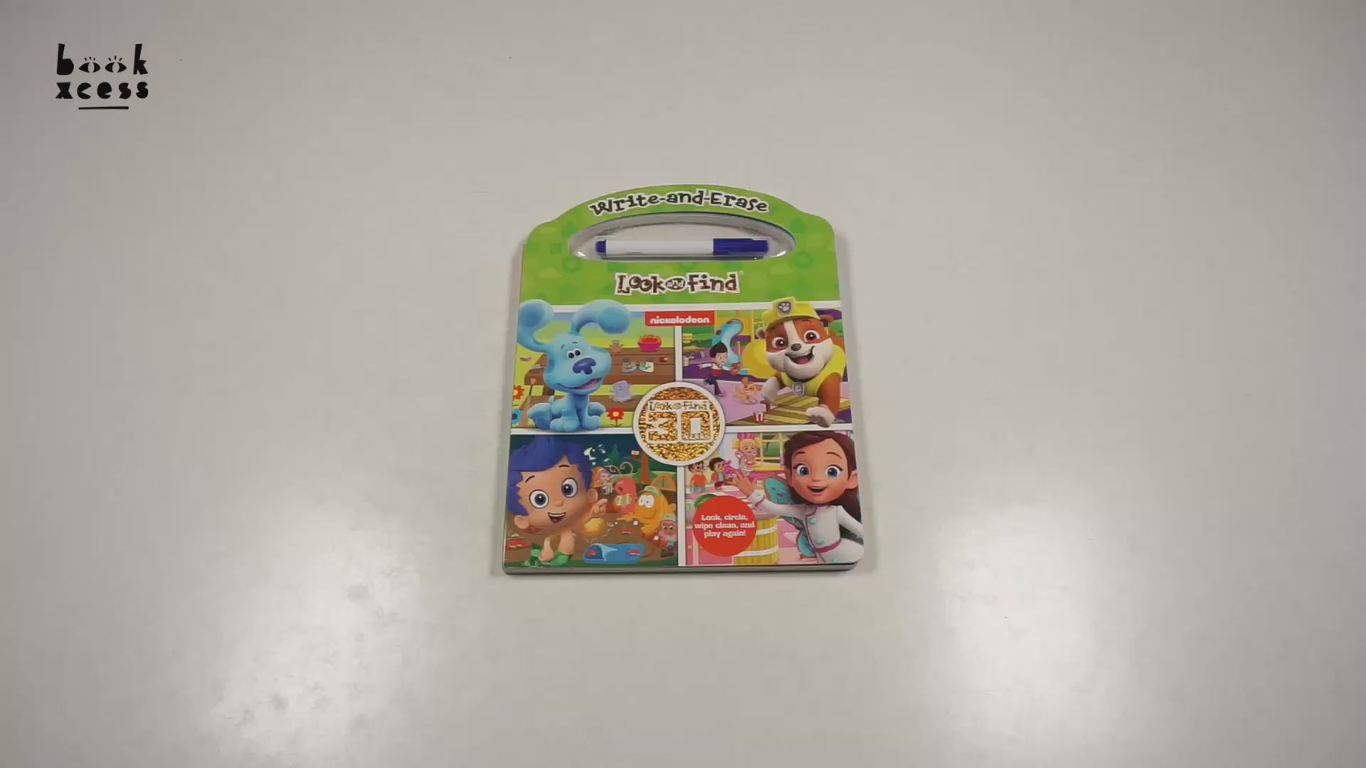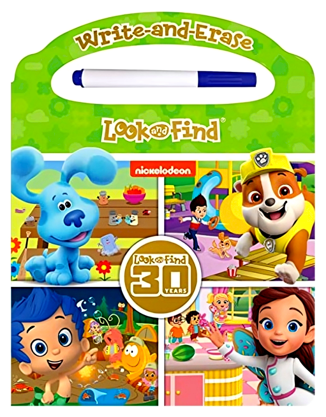 Join the PAW Patrol, Blue's Clues, and all your Nick Jr. friends on a Look and Find adventure! Use the included write-and-erase marker to circle hidden objects in 10 busy, illustrated Look and Find scenes. When you're done, just wipe the pages clean to play again! Look and Find play encourages focus and exploration, and using a marker helps develop fine-motor skills.