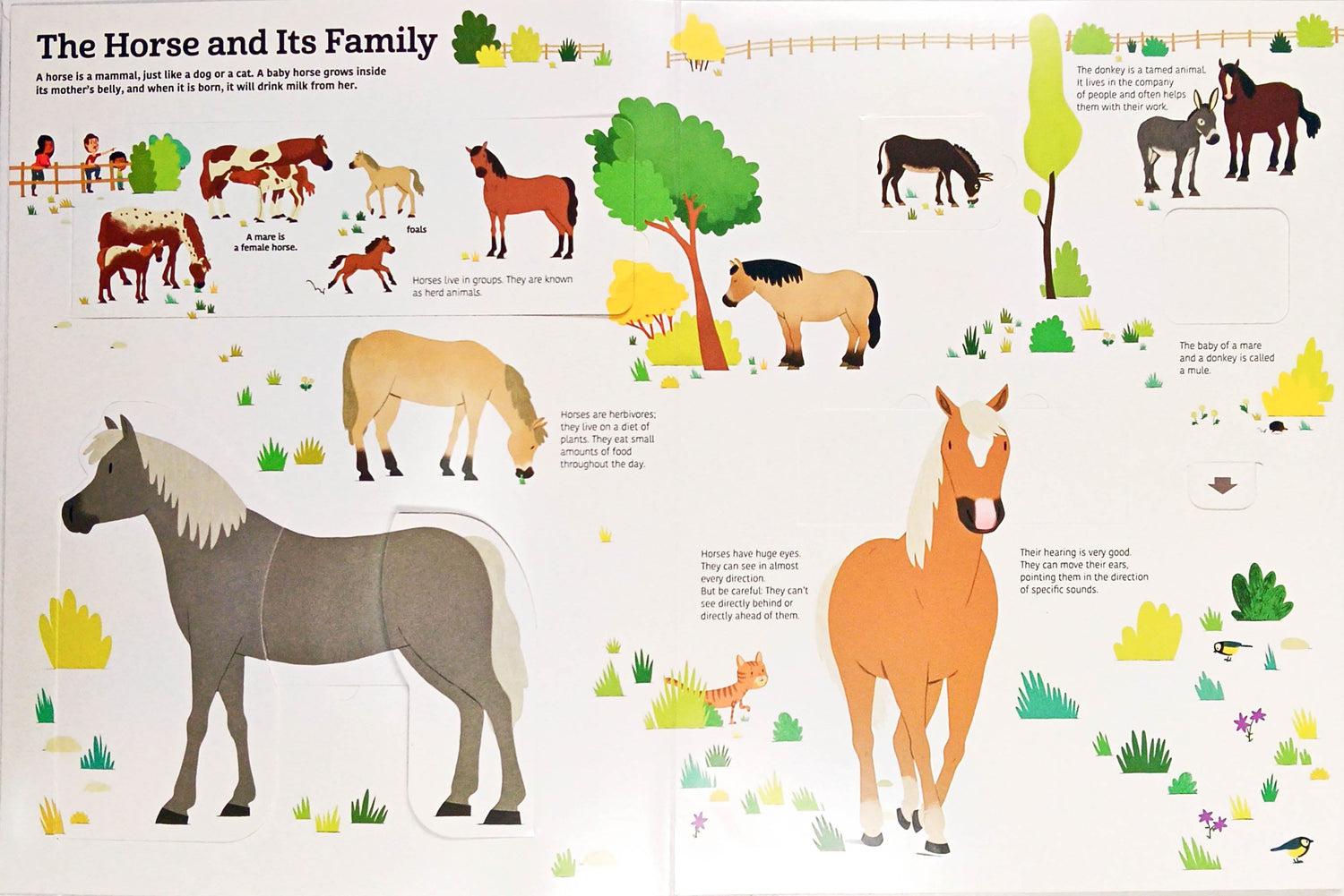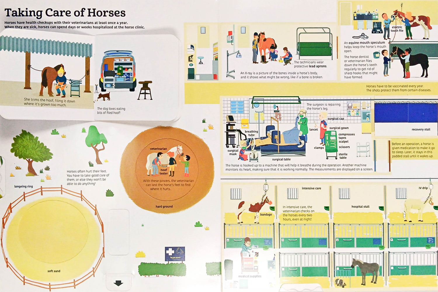 Horses are amazing creatures! Get the inside story about the history of these beloved animals, plus learn about caring for, working with, and training them. Lift the flaps to learn the parts of a horse's body, turn a wheel to help groom a horse, and more! An extraordinary look at the lives of horses that will captivate fans of horses and animals.