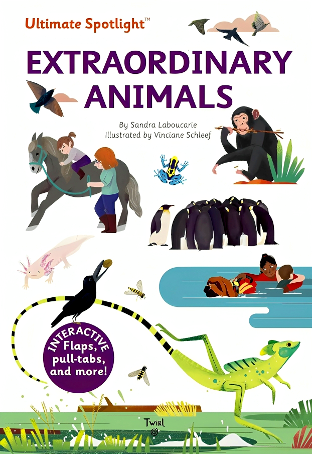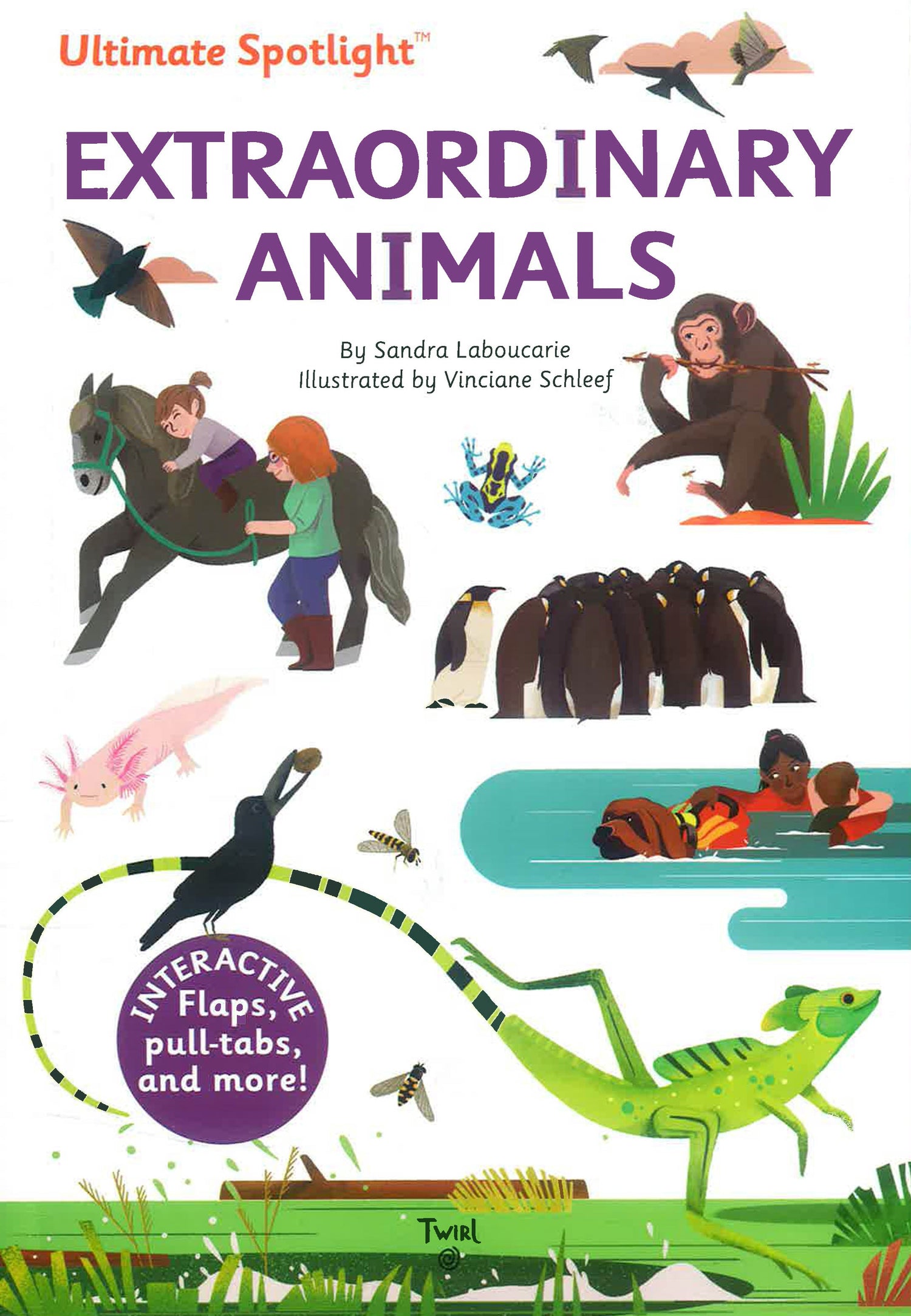 Interactive and engaging, Ultimate Spotlight: Extraordinary Animals gives children a look at the incredible skills of animals. Discover their abilities: Pull a tab to observe how an octopus hides in a large shell, turn a wheel to marvel at the ballet-like gathering of starlings, and lift a flap to reveal the chimpanzee's secret trick to catching ants.