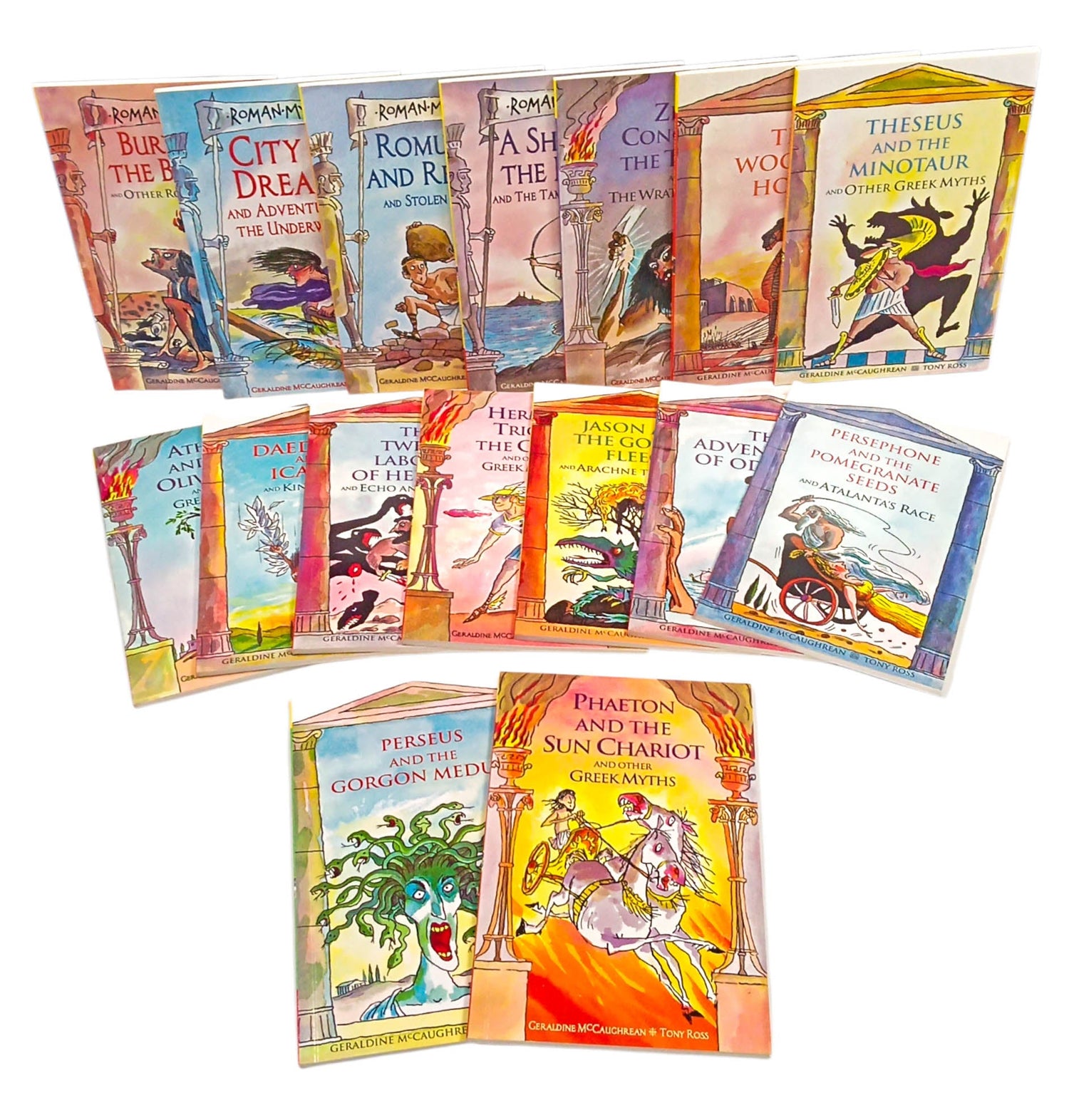 Easy-to-read versions of the world's best-loved stories. 16 book box-set. Titles include: Athena and the Olive Tree, Daedalus and Icarus, The Twelve Labours of Heracles, Jason and the Golden Fleece, Persephone and the Pomegranate Seeds, Perseus and the Gorgon Medusa, Theseus and the Minotaur, The Wooden Horse, Romulus and Remus, Hermes Tricks the Gods, The Adventures of Odysseus, Phaeton and the Sun Chariot, Zeus Conquers the Titans, Burning the Books, City of Dreams, A Shot in the Dark