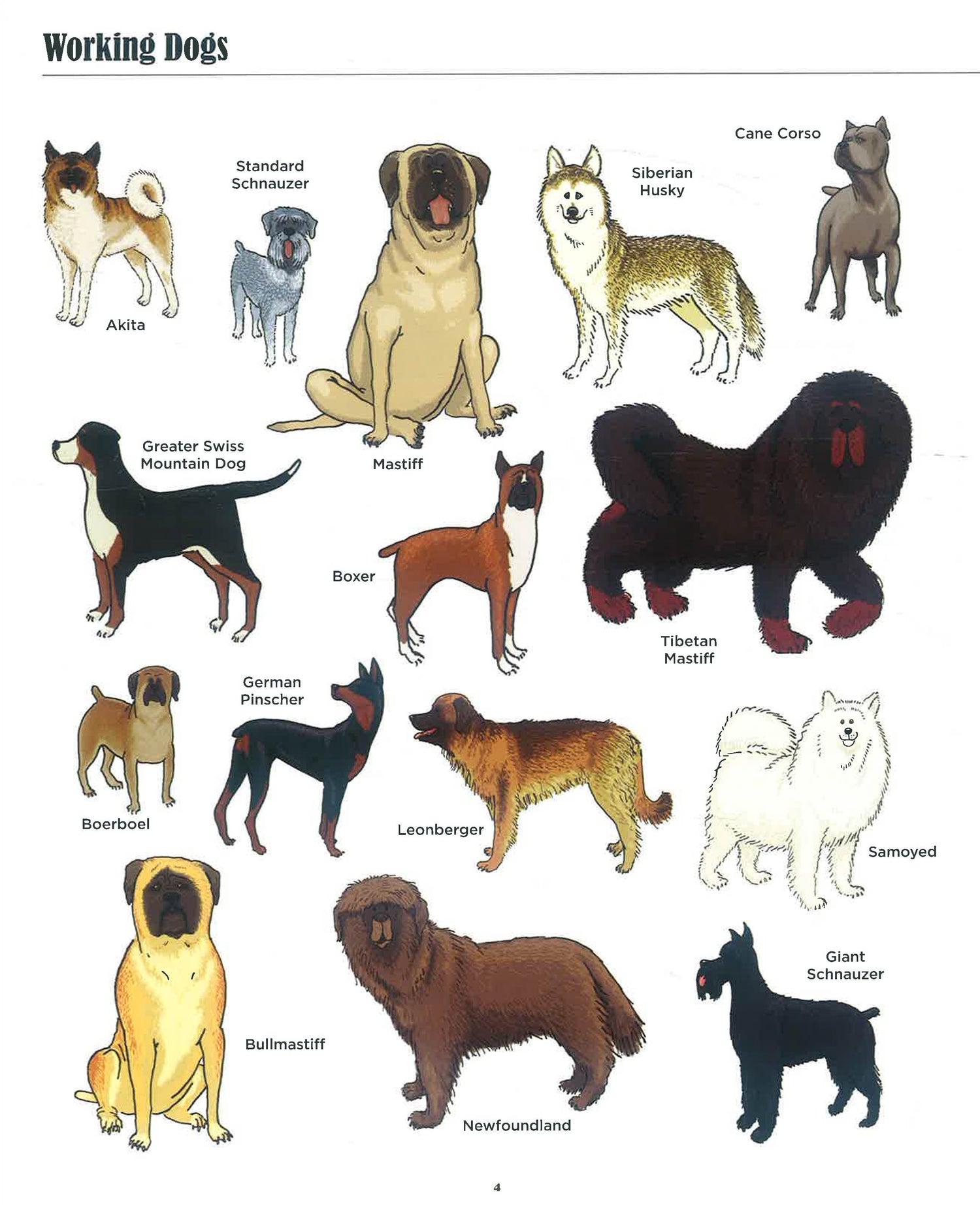 The book's double-page spreads show dogs in the seven official groupings: Working, Toy, Hound, Terrier, Herding, Sporting, Non-Sporting, as well as "designer" dogs like the Labradoodle and Chiweenie. Included here are also some obscure breeds recognized by other kennel clubs in Europe, like the Canadian Eskimo Dog and Australian Silky Terrier, as well as some dogs not yet officially recognized by the American Kennel Club.