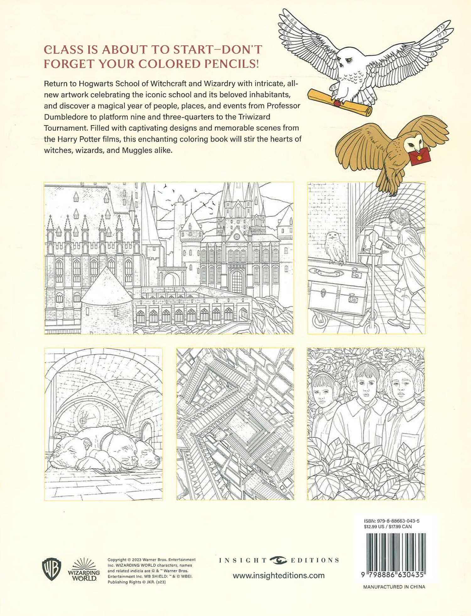 Featuring important moments and iconic places in Hogwarts from the beloved film series, fans and aspiring Hogwarts students will color in the settings of the Triwizard Tournament, Yule Ball, feasts, and so much more. Harry Potter: Hogwarts Coloring Book takes fans on a tour through the halls of Hogwarts with over 50 illustrations of beloved scenes for fans of all ages to color.
