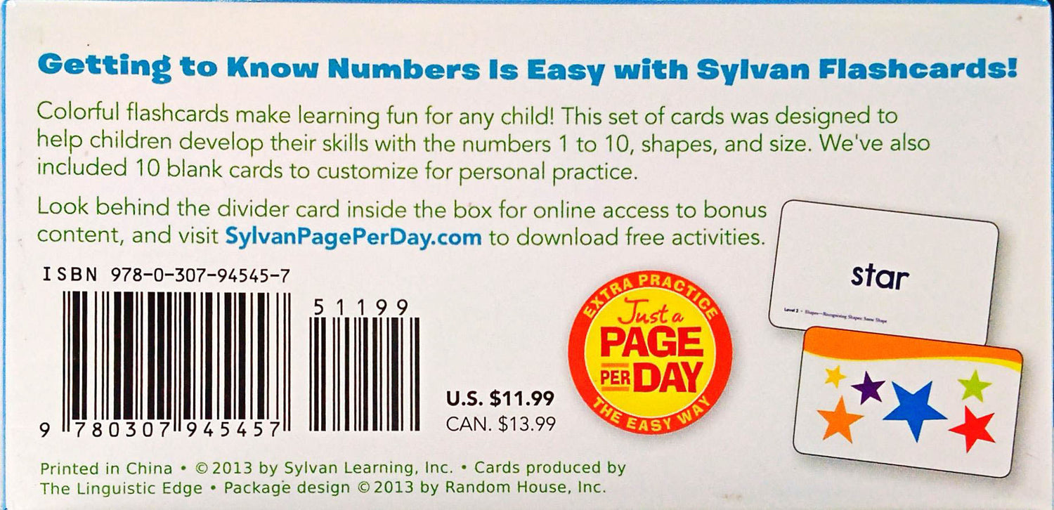 Getting comfortable with numbers is a big step on the way to success in math in elementary school and beyond. These flashcards are designed to help children get ahead, prepare for kindergarten, and develop a love of learning--and best of all, to have fun doing it! The box contains 230 flashcards with colorful illustrations, plus 10 blank cards that children can illustrate themselves.