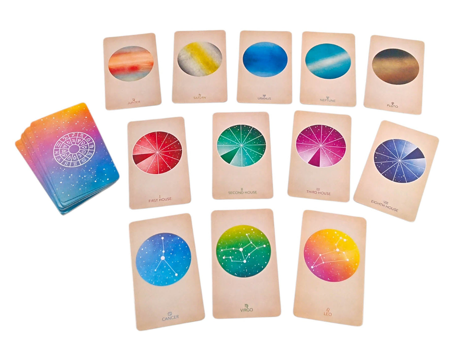Harness the magic of the cosmos with this fully illustrated astrology-themed oracle cards and guidebook set from award-winning artist Claire Goodchild, owner of the design company, Black and the Moon.