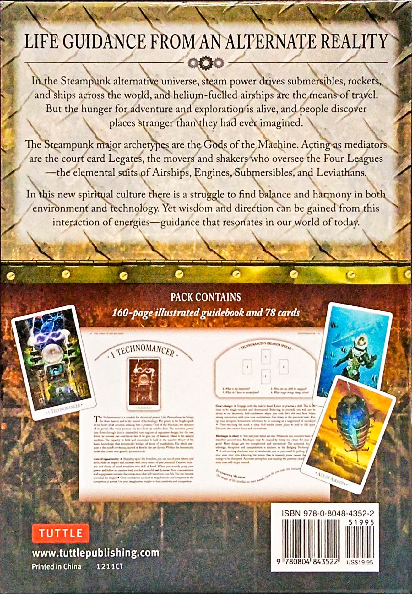 Tumble down the rabbit hole into a construction of technology, machines, retro-art and culture, full of fantastic visions in a time and place that realizes an alternate world to our own. The world of steampunk combines Victoriana, the Gothic, and early invention with a huge dash of imagination and a tremendous sense of style. The Steampunk Tarot is a world apart: a nexus of opulence, innovation and alternate world-views that is reflected in 78 scenes. The 22 major arcana cards are the actors at the heart of the machine, the deos macninae or "the gods of the machine."