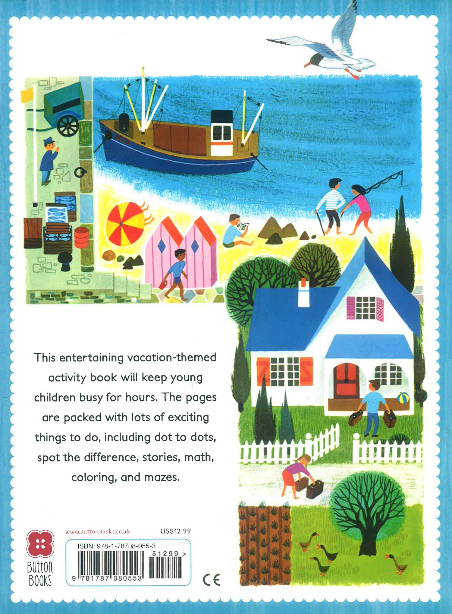 This fun and educational vacation-themed activity book will keep young children entertained for hours. The pages are packed with all sorts of enjoyable things to do, including coloring in, counting, dot to dots, spot the difference and other engaging puzzles. The Vacation Activity Book features beautiful, bright illustrations that will draw children in and keep them busy. Alain Grée's unmistakably rich and appealing style of illustration makes every page incredibly absorbing. And while children are enjoying the activities, they will be practicing a wide range of skills, including observational, conversational and motor skills.