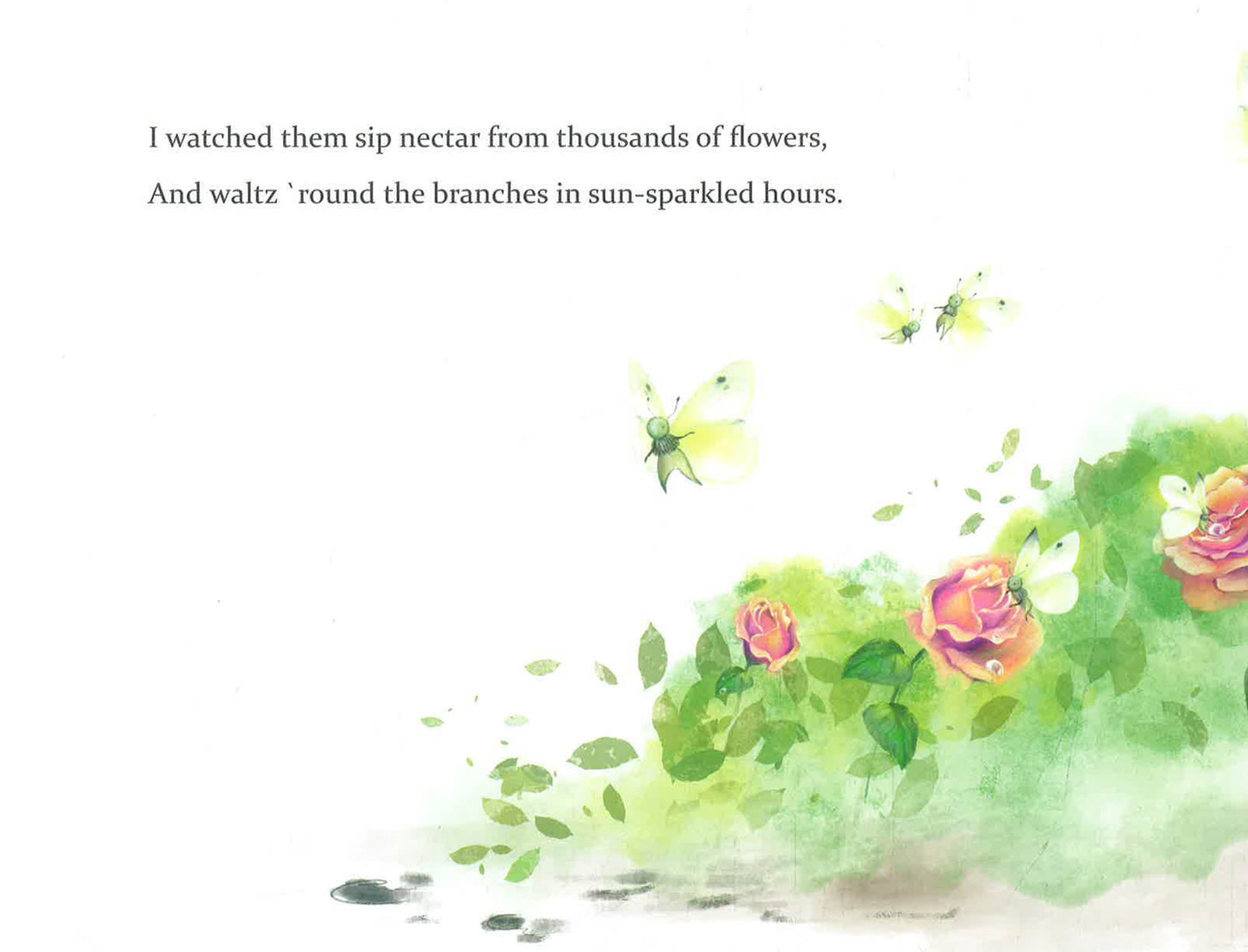 Inspired by the author's own observations of the butterflies just outside her window, comes a story of a child's enchantment with the small cabbage white. They dance by the dozens among the flowers, slowly disappearing when shadows grow long.