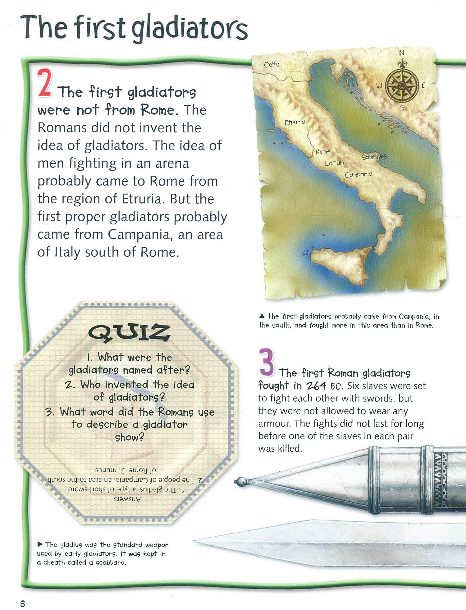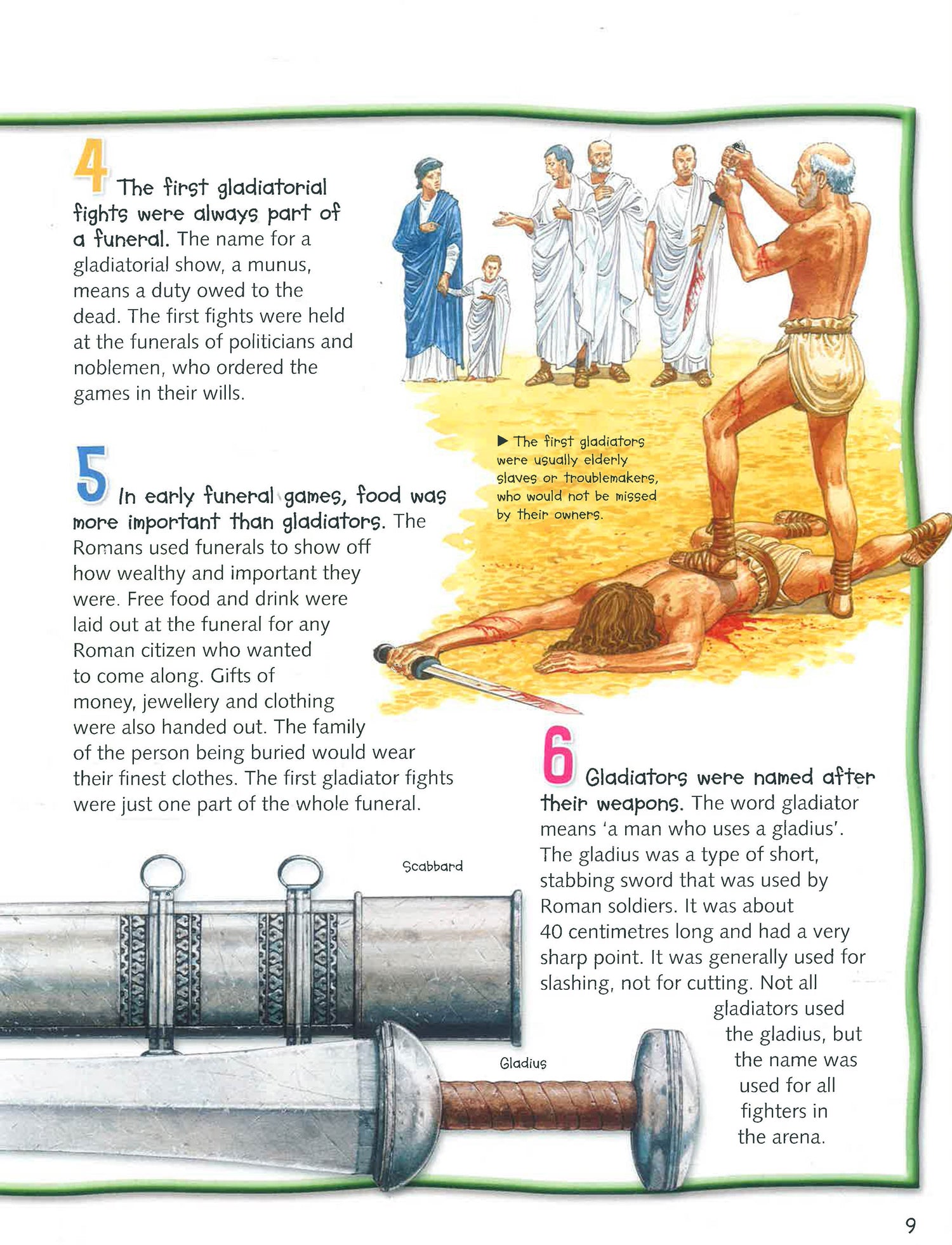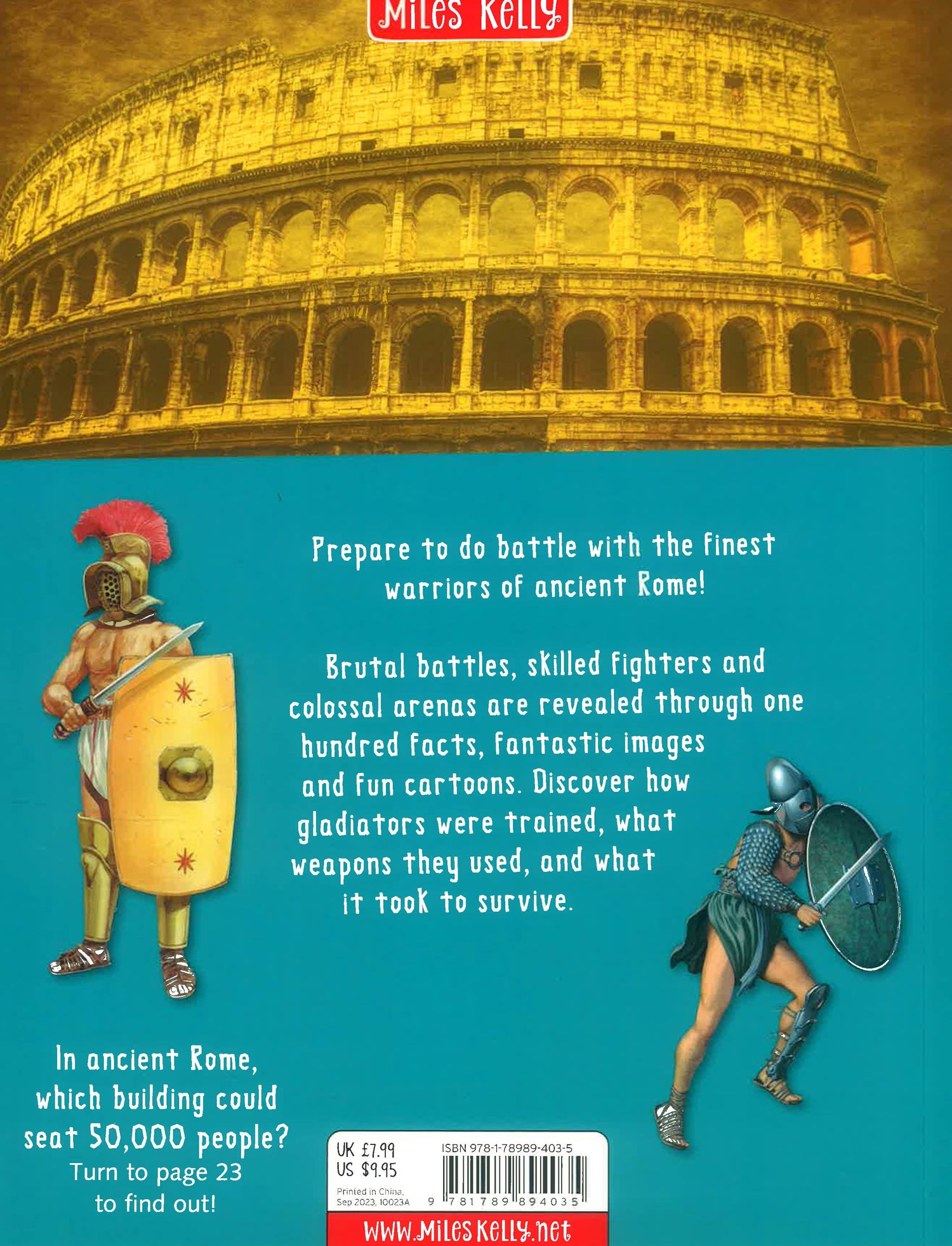 100 Facts Gladiators covers key topics about the ancient spectator sport of fighting to the death in straightforward numbered facts. Each fact is accompanied by beautiful illustrations and photographs, which add visual meaning to the information for kids.