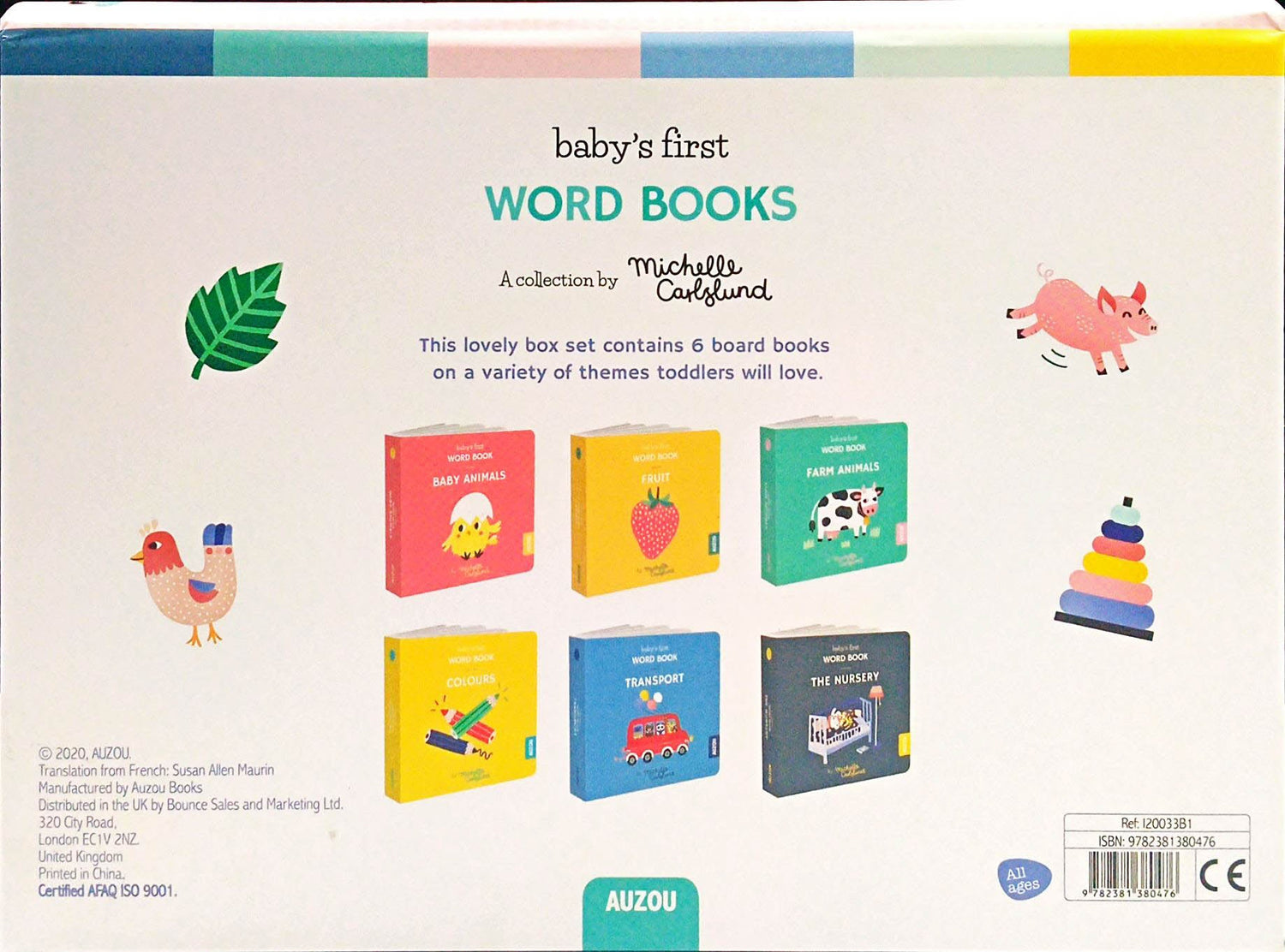 These 6 robust board books introduce babies to important first vocabulary and come presented in a beautiful gift box that can be used to store the books. With bright, friendly illustrations by Michelle Carlslund and rounded corners, perfect for curious hands, this set is an excellent tool for introducing baby to books and reading. Books included are Fruit, Baby Animals, Colours, Transport, Farm Animals and The Nursery Core vocabulary accompanied by bright, simple illustrationsChunky pages and rounded cornersBeautifully presented in a gift box that can be used for storage