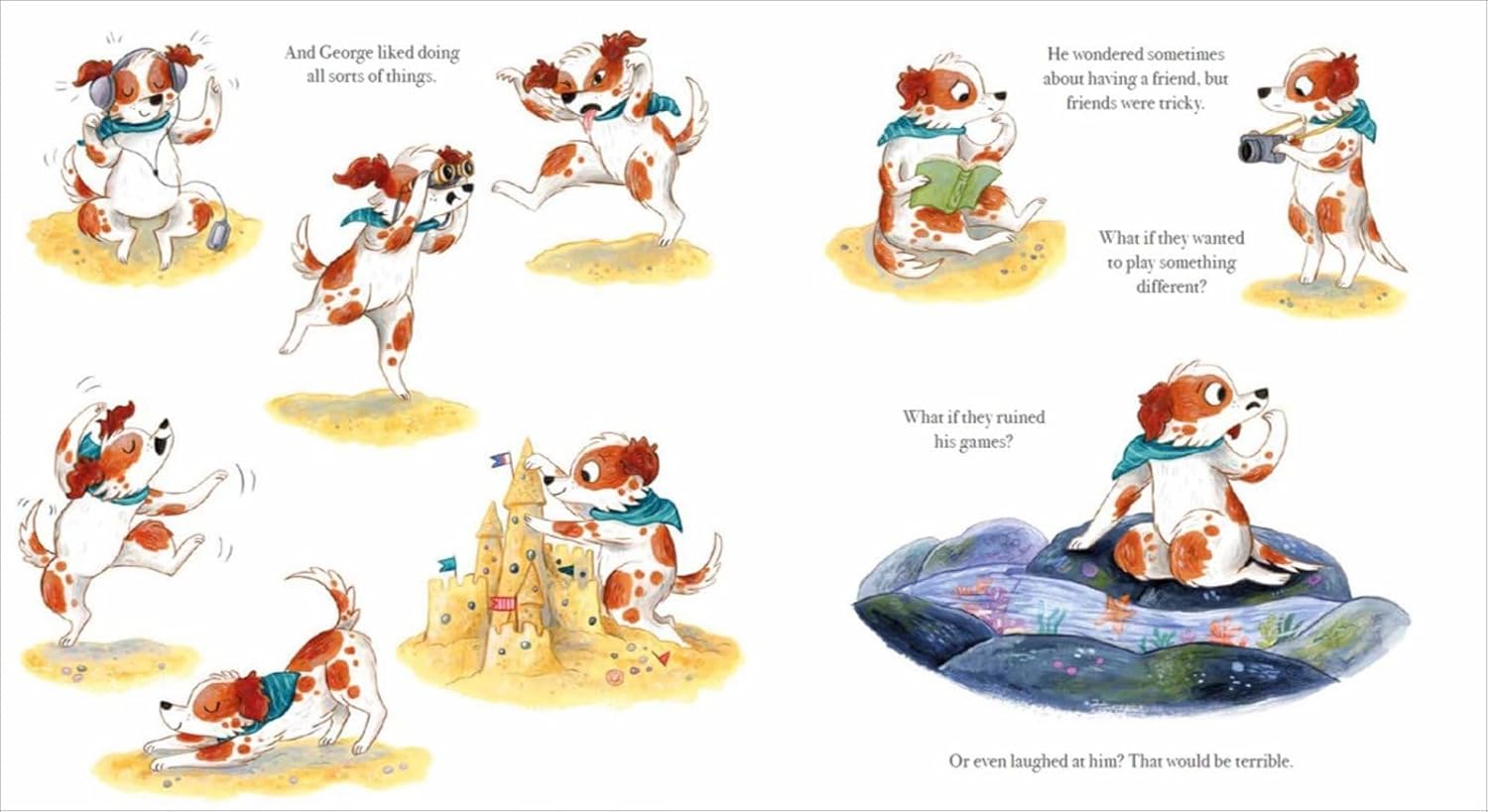 George the dog loves living alone on his island. He likes to do everything his own way, and friends would just ruin things. But one day a cheerful little seal wiggles up to him. Her name is Pebble, and she's determined to be George's friend. George is quiet and grumpy. Pebble is lively and funny. Can this odd couple ever be friends?