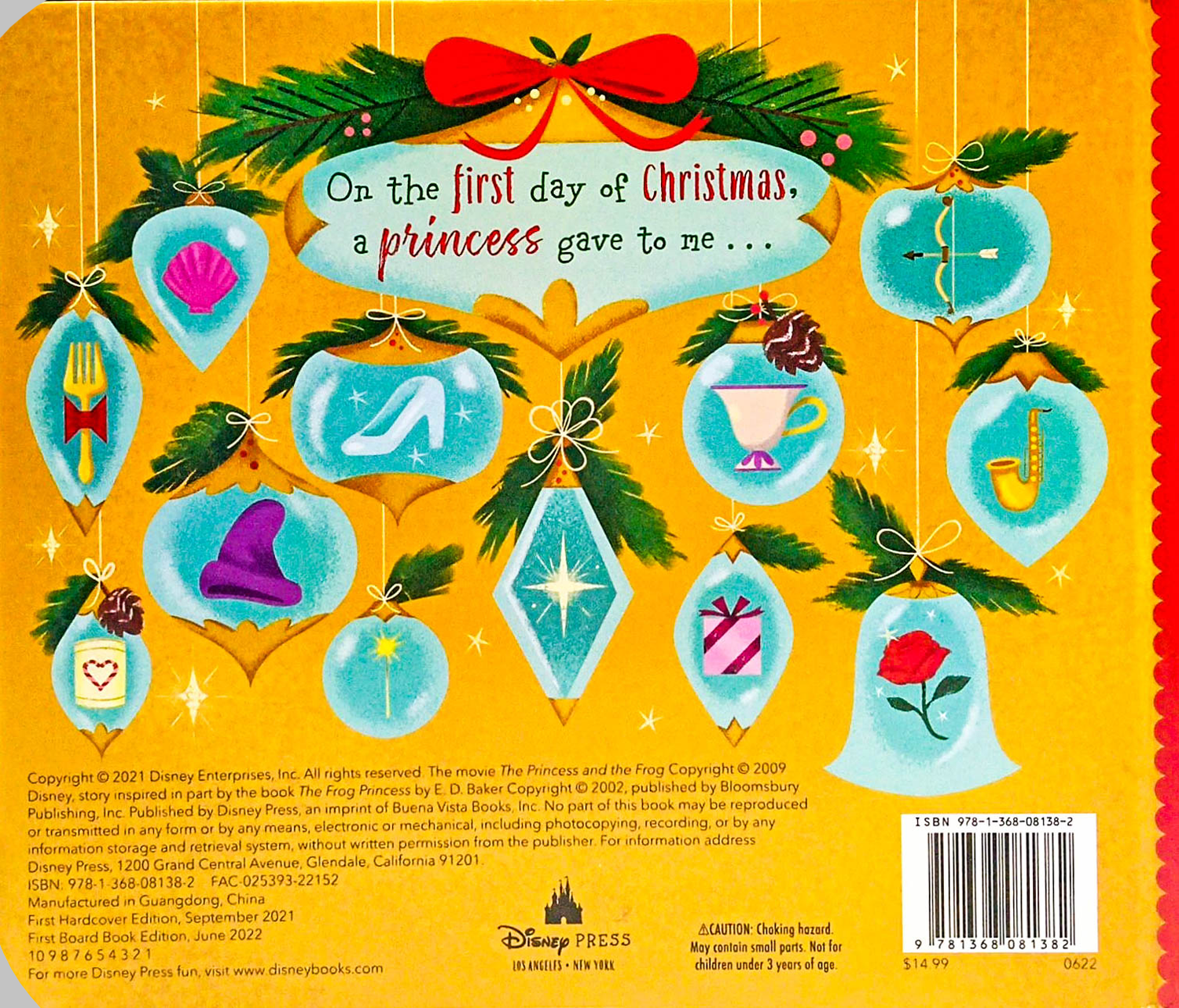 An adorable Disney Princess holiday picture book inspired by the classic carol, “The Twelve Days of Christmas.” Inspired by the famous song “The Twelve Days of Christmas,” a new holiday tradition is here: the twelve days of princess! Countdown to Christmas with Tiana, Rapunzel, Merida, Cinderella, Belle, Aurora, Snow White, and Ariel. Each day brings a new magical gift, like two glass slippers or seven singing dwarfs, from one of your favorite Disney Princesses to help get you into the holiday spirit.