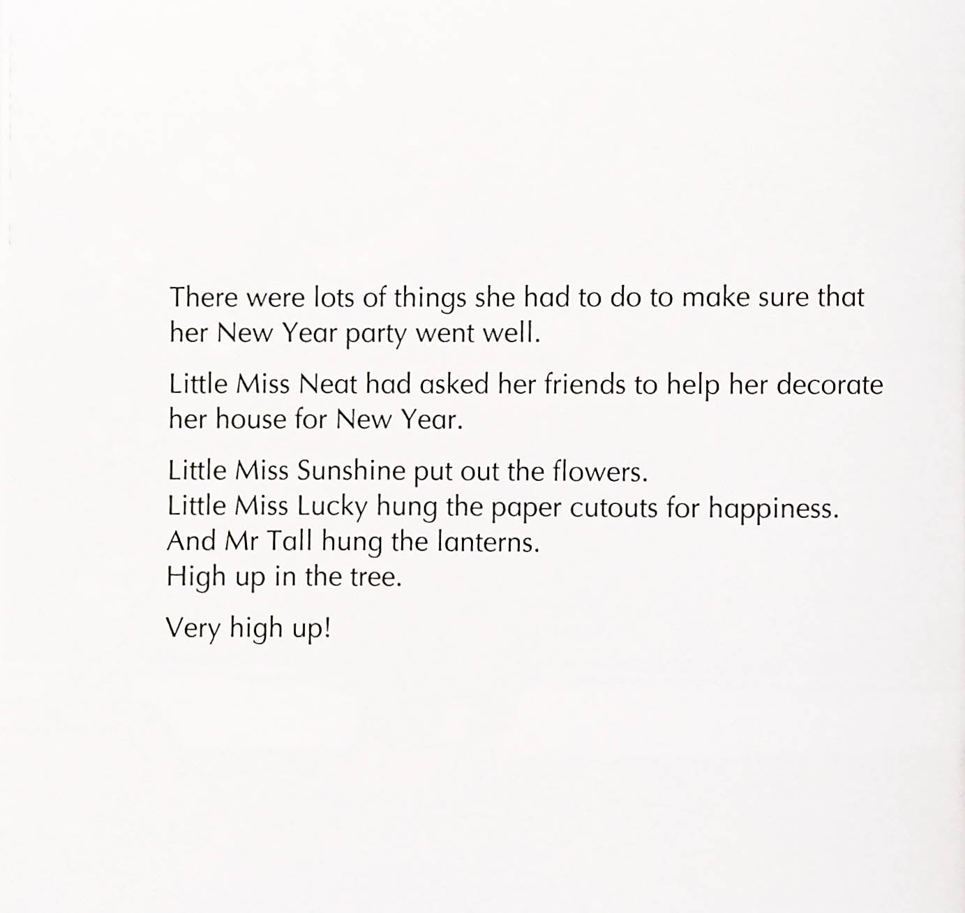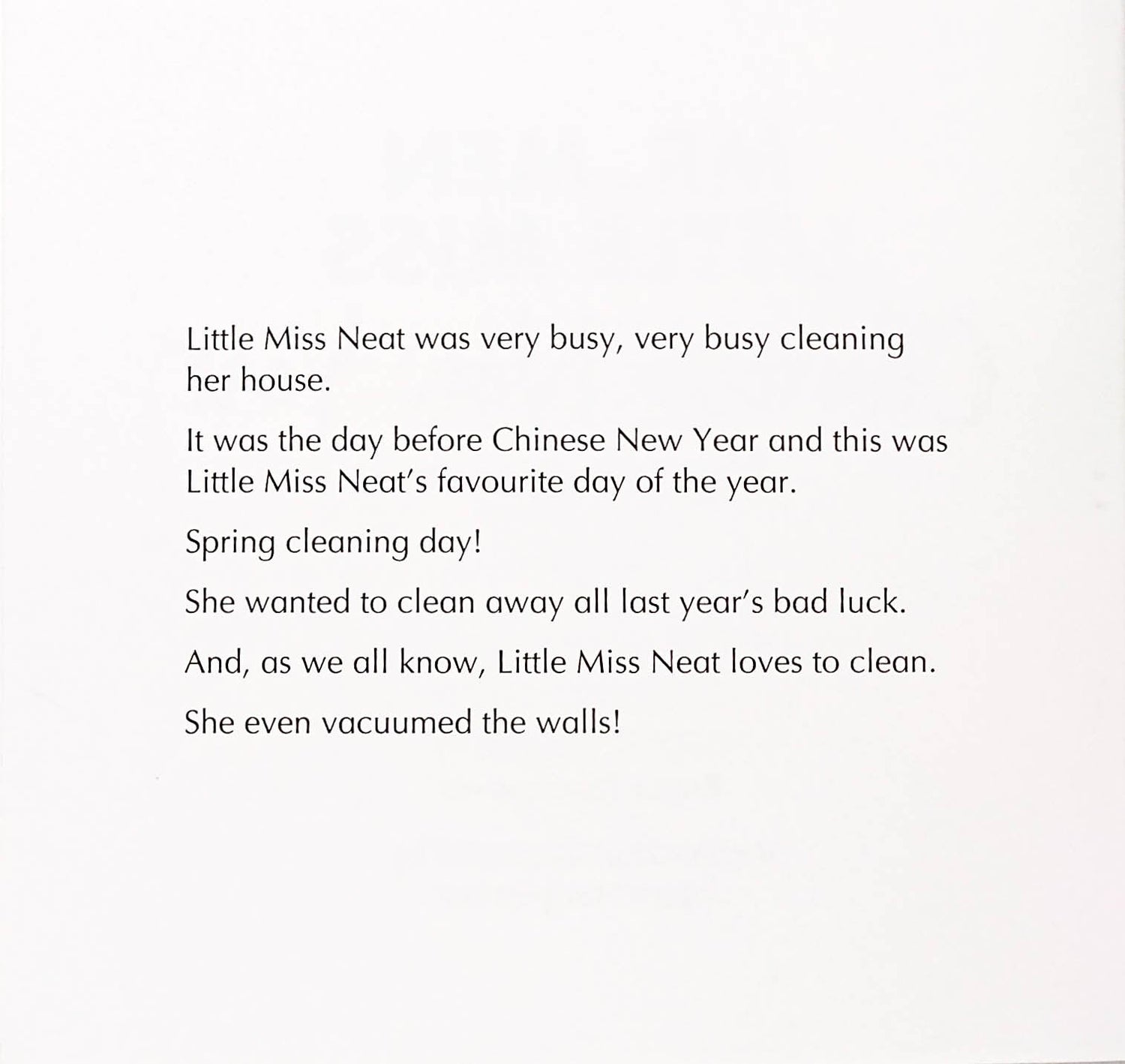 Little Miss Neat is having a party with traditional decorations and a New Year's Eve feast and the next day there will even be a dragon dance. What could possibly go wrong?!