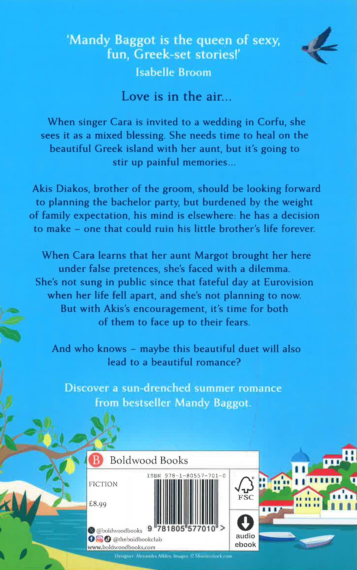 When singer Cara is invited to a big, fat Greek wedding in Corfu, she sees it as a mixed blessing: some time to heal on the beautiful Greek island with her aunt will be a tonic, but it’s going to stir up memories – of before Seb ghosted her and disappeared off the face of the earth.