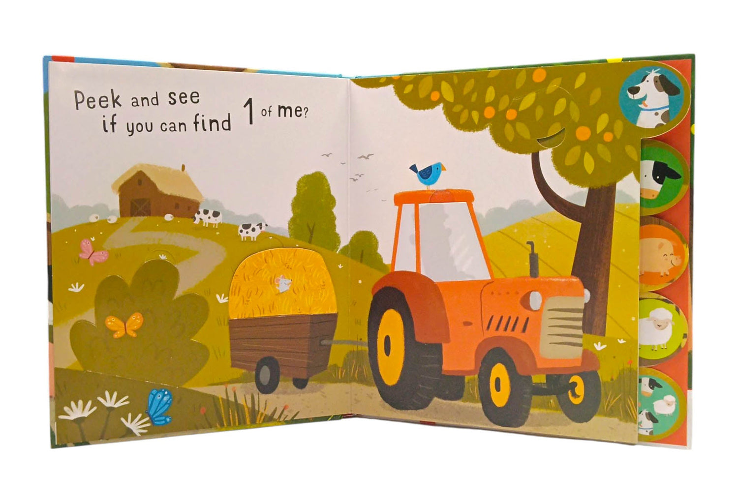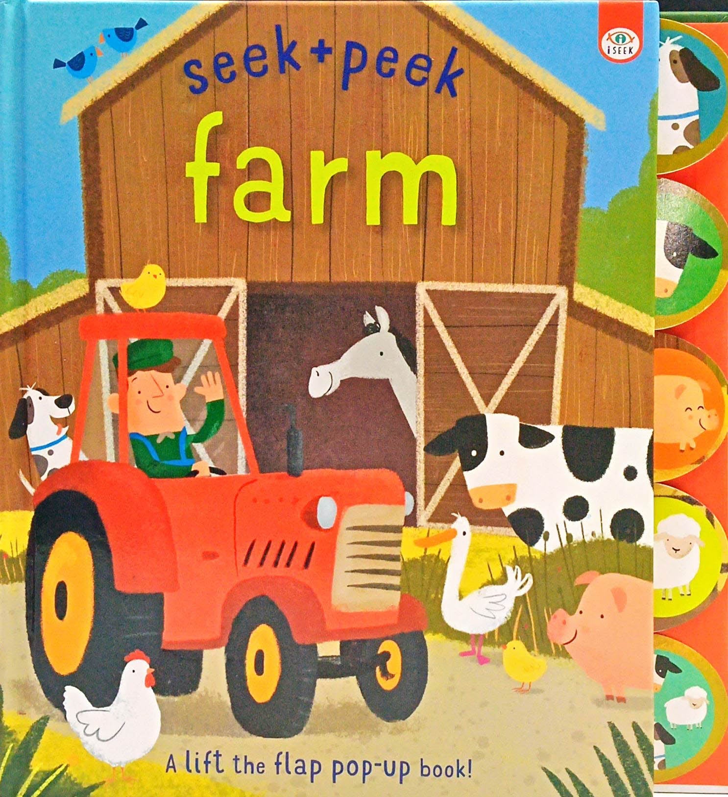 Seek & Peek Farm contains five tabbed spreads with fun flaps to bring them to life, and an exciting pop- up scene at the end. This unique pop-up books engage children through a series of simple questions and answers, with flaps to lift and reveal! • Multiple flaps on each scene • Superb pop-up • Improves visual recognition and counting skills